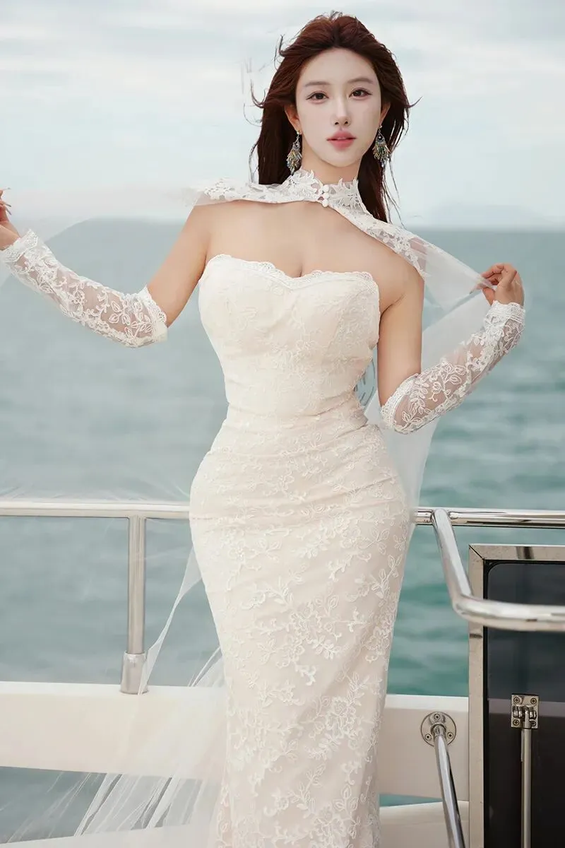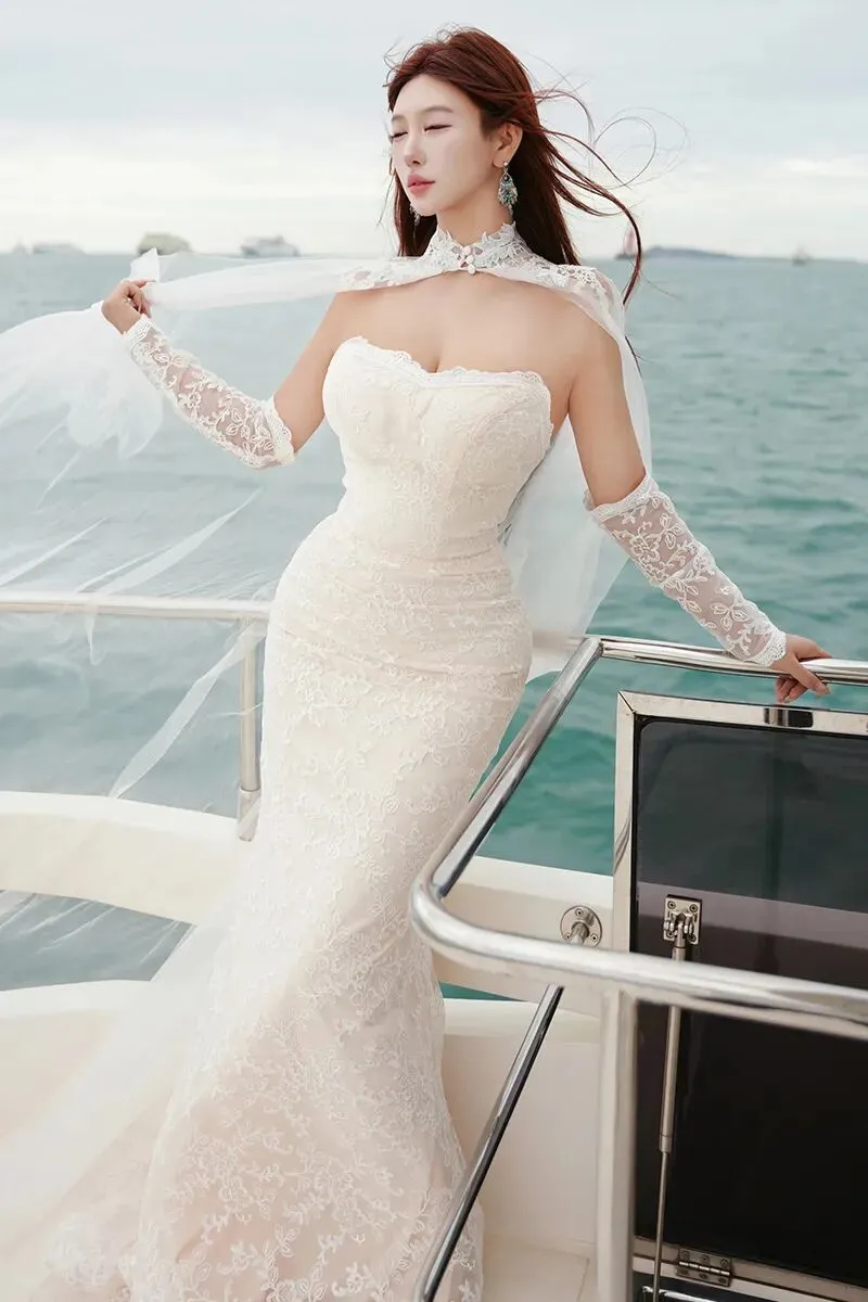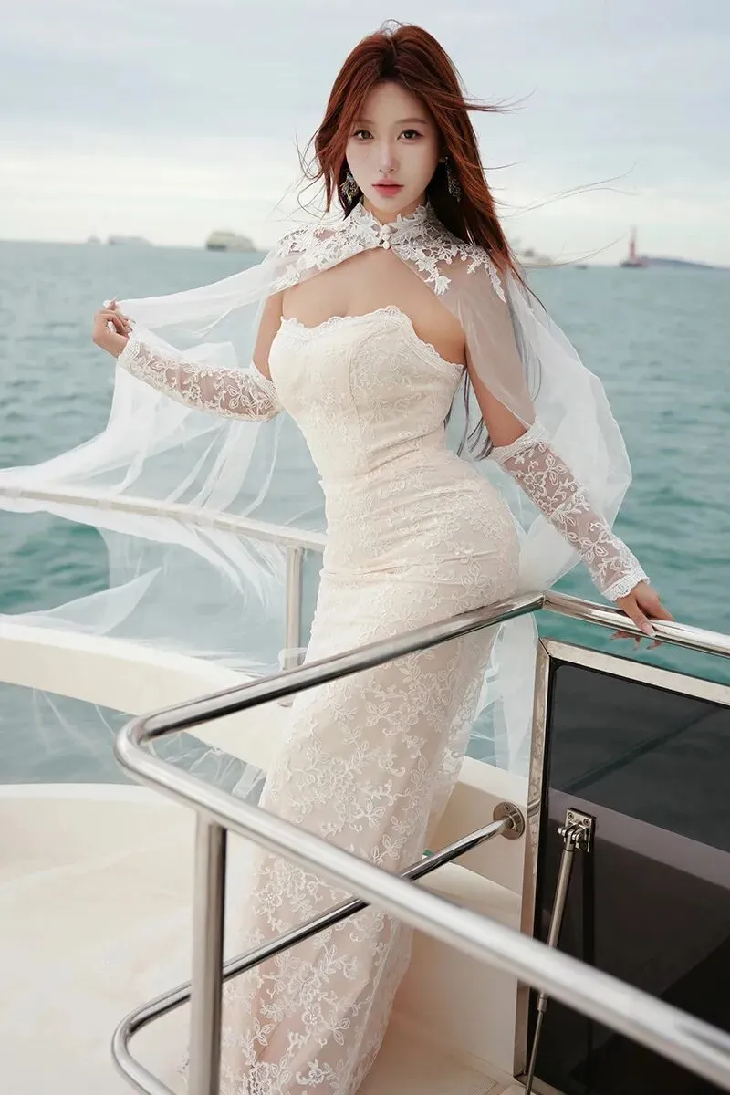 当前位置:首页>美女资讯>美女模特金允希性感白色婚纱写真图片