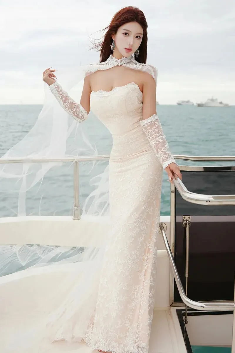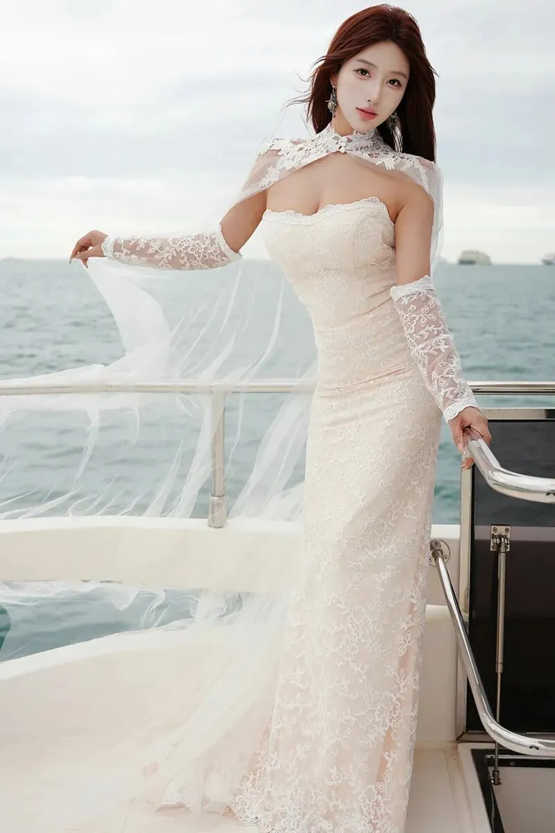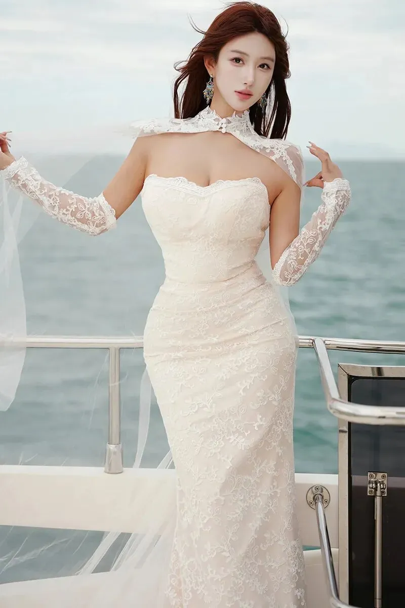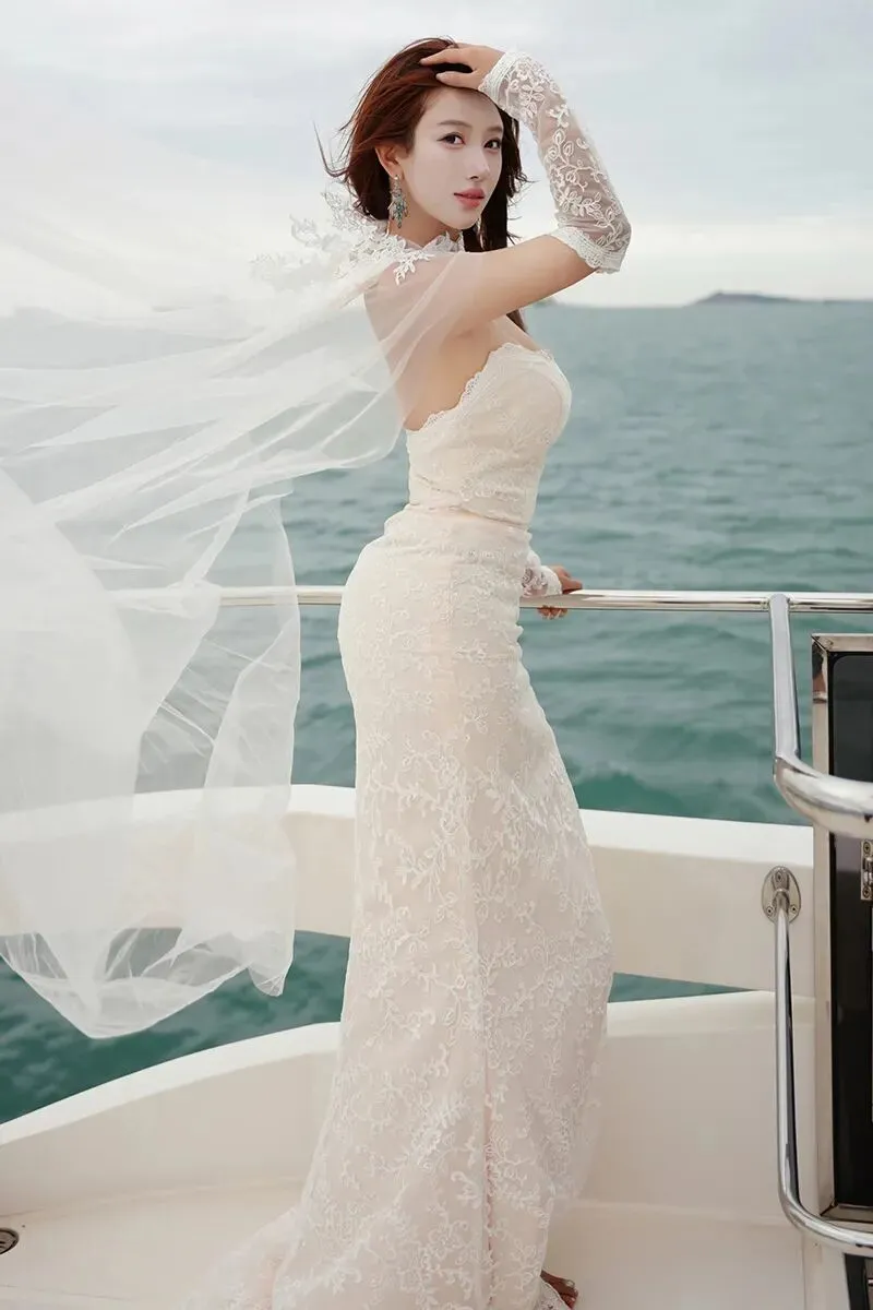 当前位置:首页>美女资讯>美女模特金允希性感白色婚纱写真图片