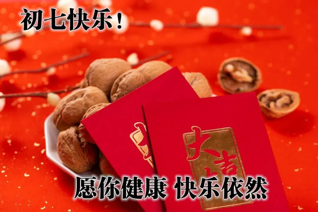 初七喜气扑面,祝福随风飞舞,身体健康心灵open,事事顺利人缘旺。追逐梦想扬帆起航,笑口常开福满堂。初七送来吉祥语,好运连连喜乐逢。