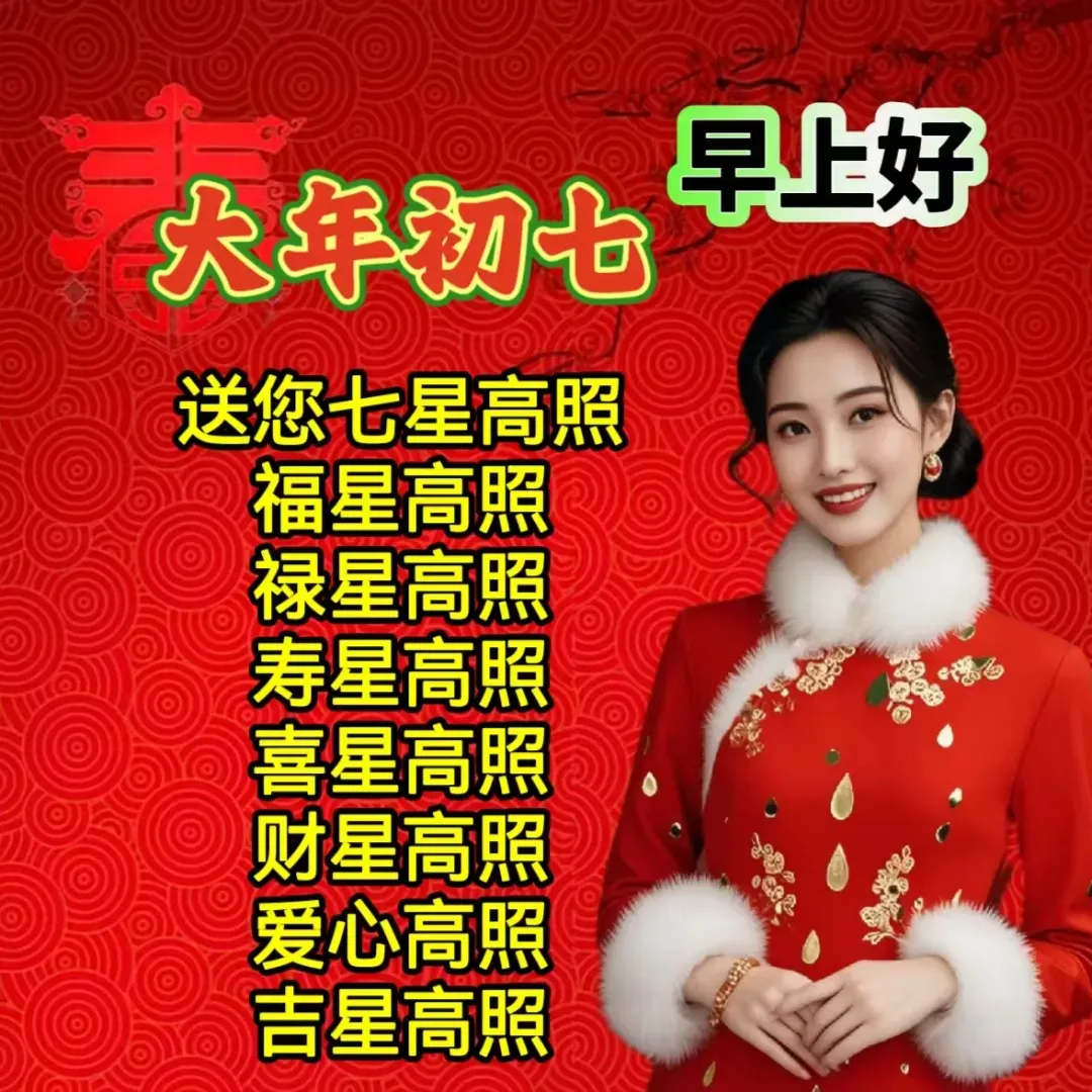 大年初七,是新的一年大吉之日,祝您幸福安康,送您一帆风顺事事好,祝您七星高照运气好,上班顺,心情好,愿您生活美满,步步高!