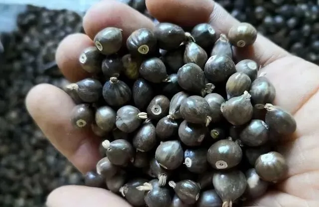 种子摘下来 , 硬得跟小石头似的。