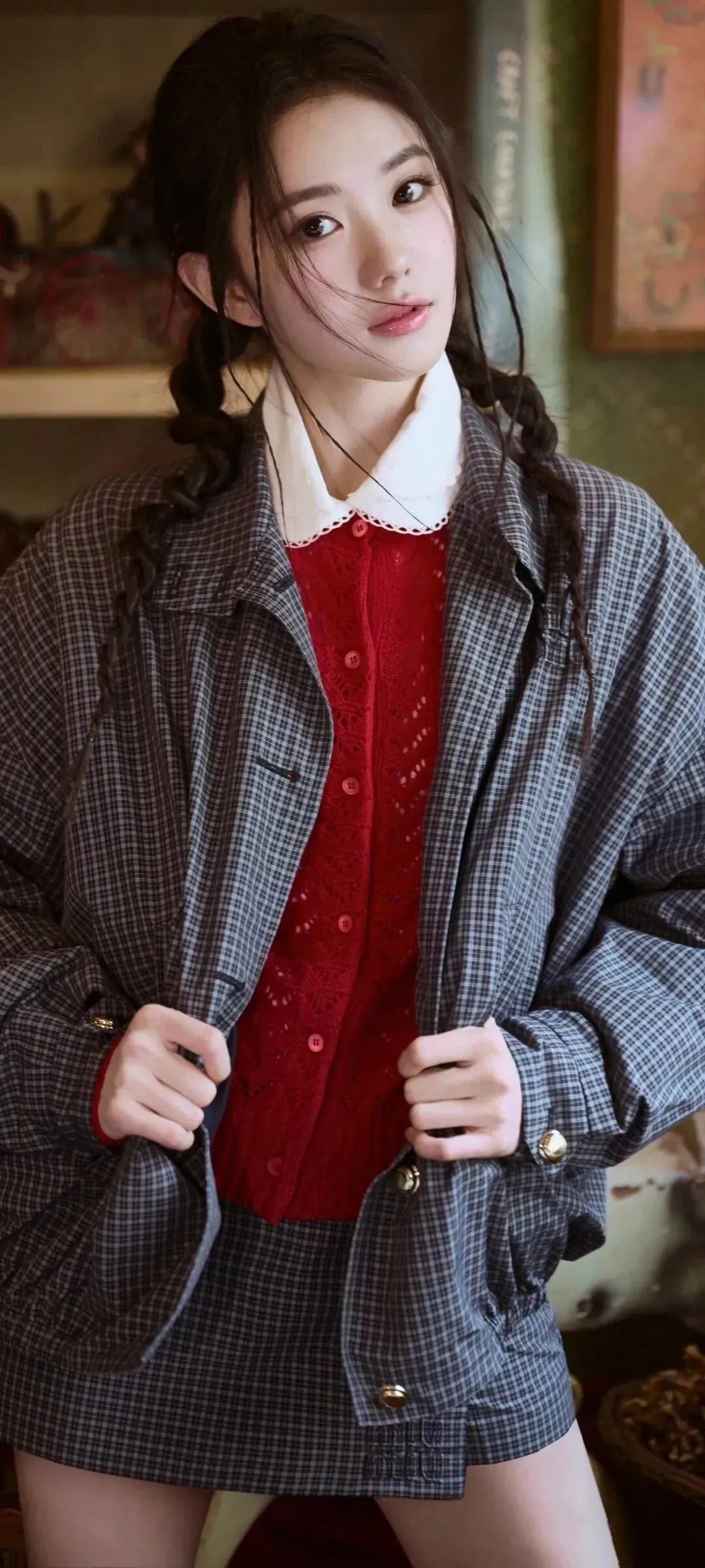 当前位置:首页>美女资讯>刘浩存复古学院风写真曝光,红衫麻花辫+童话房间,甜度值拉满!