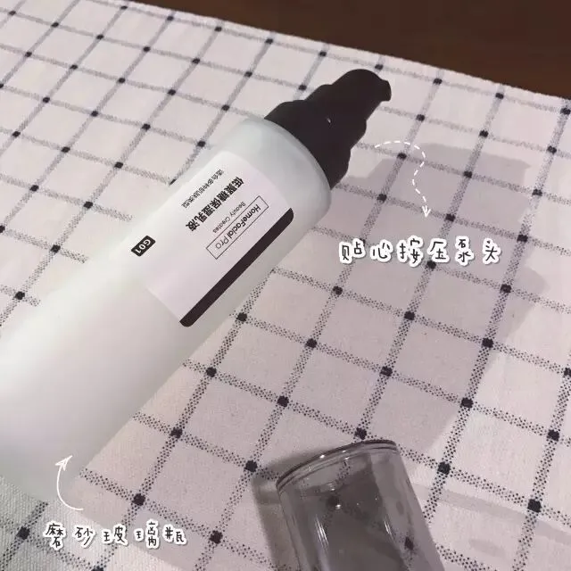 这瓶低聚糖保湿乳液,外观上延续了HFP一贯的简约风格,透明磨砂玻璃瓶,配上黑色按压泵头,使用起来方便又卫生。非常有份量的一瓶,跟平价的乳液相比,质感真的完全不一样。