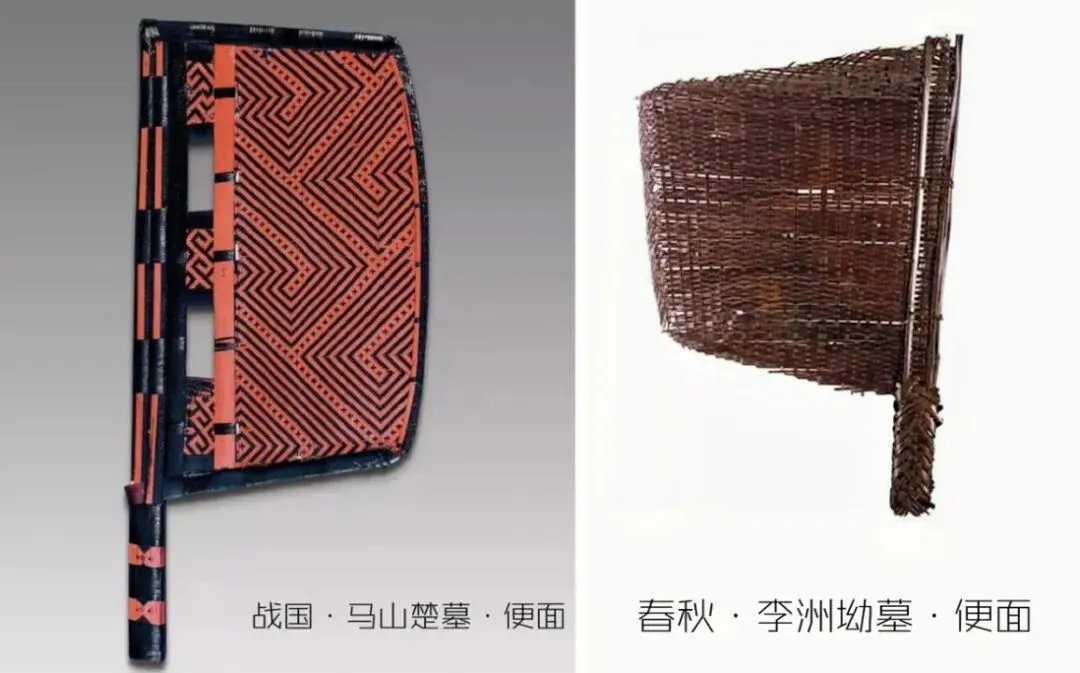 但这组照片也有复原向BUG,比如她手持的却是汉晋风格便面,现在人也直接按其形状称为“刀扇”,先秦风格应为下图风格,用来挡脸或礼仪使用。《汉书·张敞传》载:“敞无威仪,时罢朝会,过走马章台街,使御吏驱,自以便面拊马。”颜师古注:“便面,所以障面,盖扇之类也。”