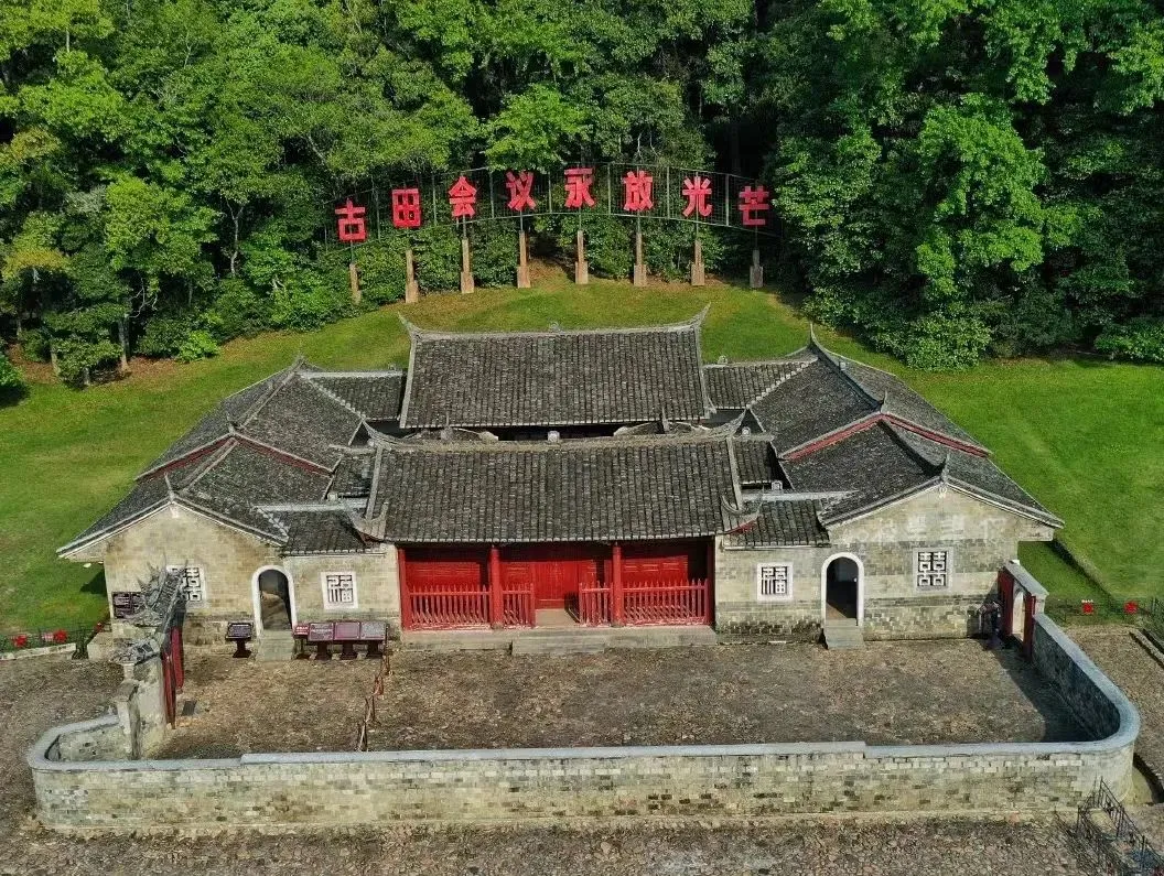 古田会议会址,原为廖氏宗祠,又称万源祠,始建于1848年,位于福建省龙岩市上杭县古田镇,根据2023年4月网站显示,建筑面积826平方米,是全国重点文物保护单位、国家AAAAA级旅游景区、全国文物系统先进集体、全国红色旅游景点景区。