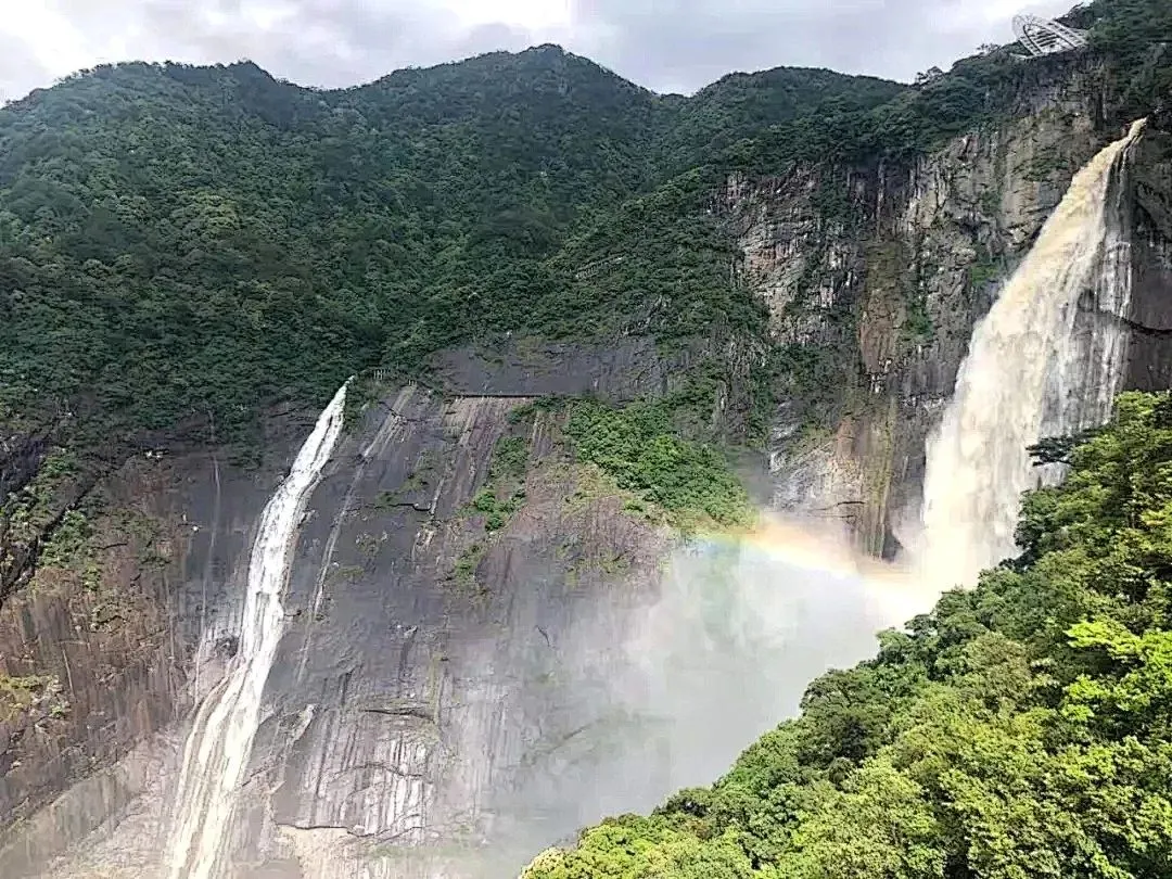 总落差314米,单级落差达184米,被誉为“华东第一瀑”,是国内难得一见的双瀑。由岱仙瀑布和油漏漈瀑布组成。