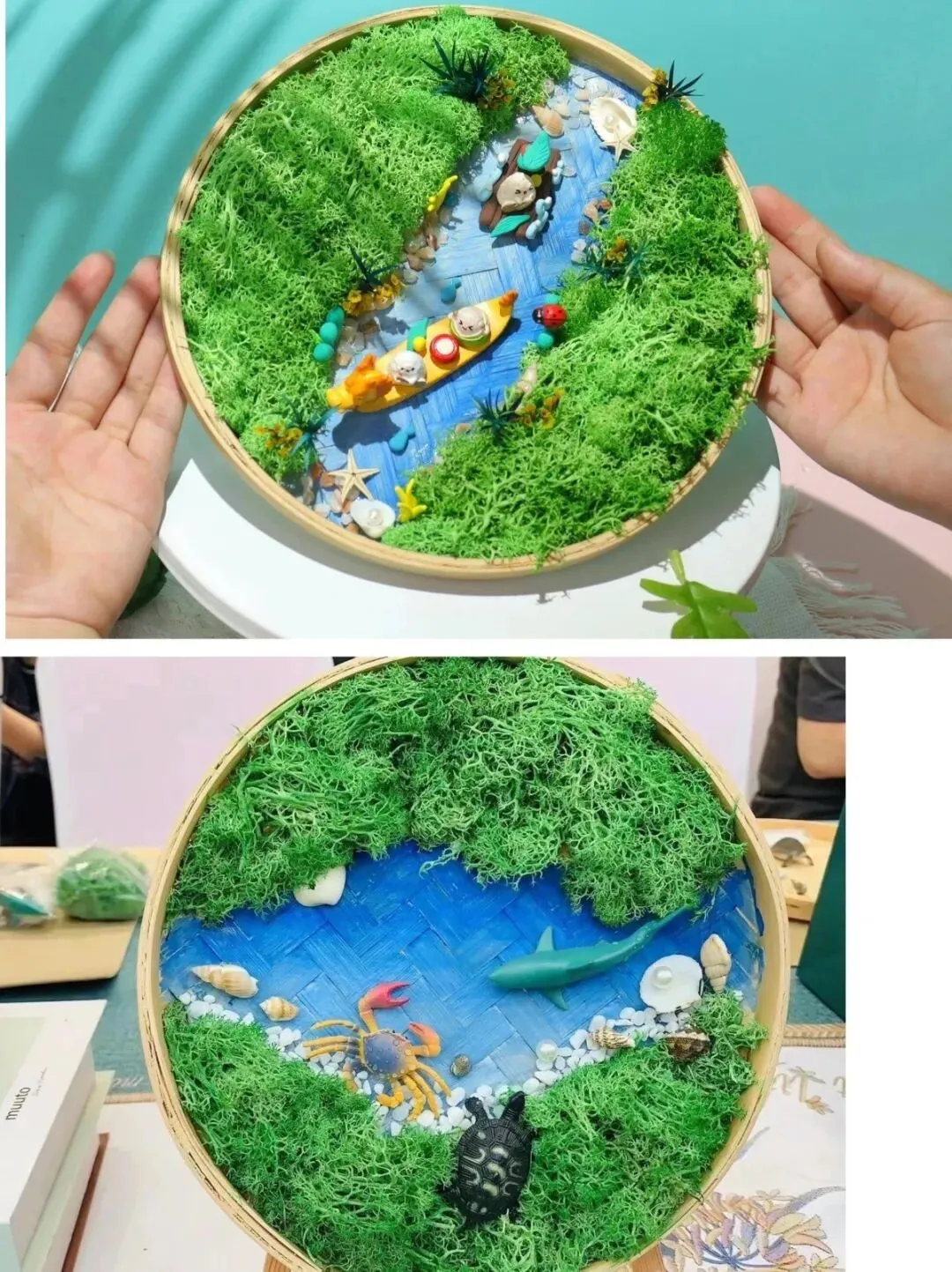 “苔痕上阶绿,草色入帘青”,取宋式竹编工艺为底,搭配鲜活苔藓,在指尖勾勒自然生机。专业老师指导构图搭配,将翠绿苔藓与古朴竹编相映成趣,成品可直接带回家,让春日绿意常伴身旁。