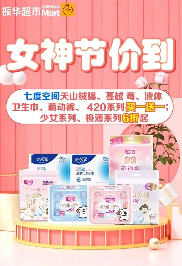 当前位置:首页>美女资讯>【振华超市】2月23日-3月15日 女神节价到,卫生巾低至3.8折起!
