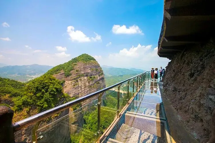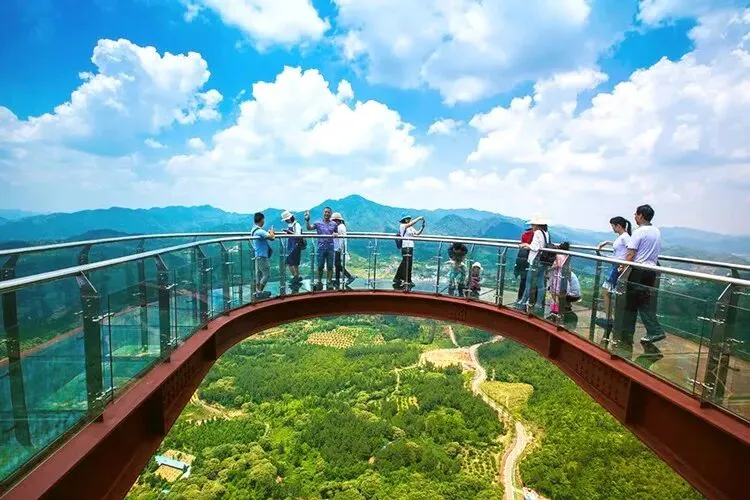 花涧玻璃天桥:雄跨两山翠绿之间的玻璃天桥,宛如雨后彩虹,行走在透明的玻璃天桥之上美景尽收眼底,桥底的幽寒山谷、悬崖峭壁刺激到令人尖叫~