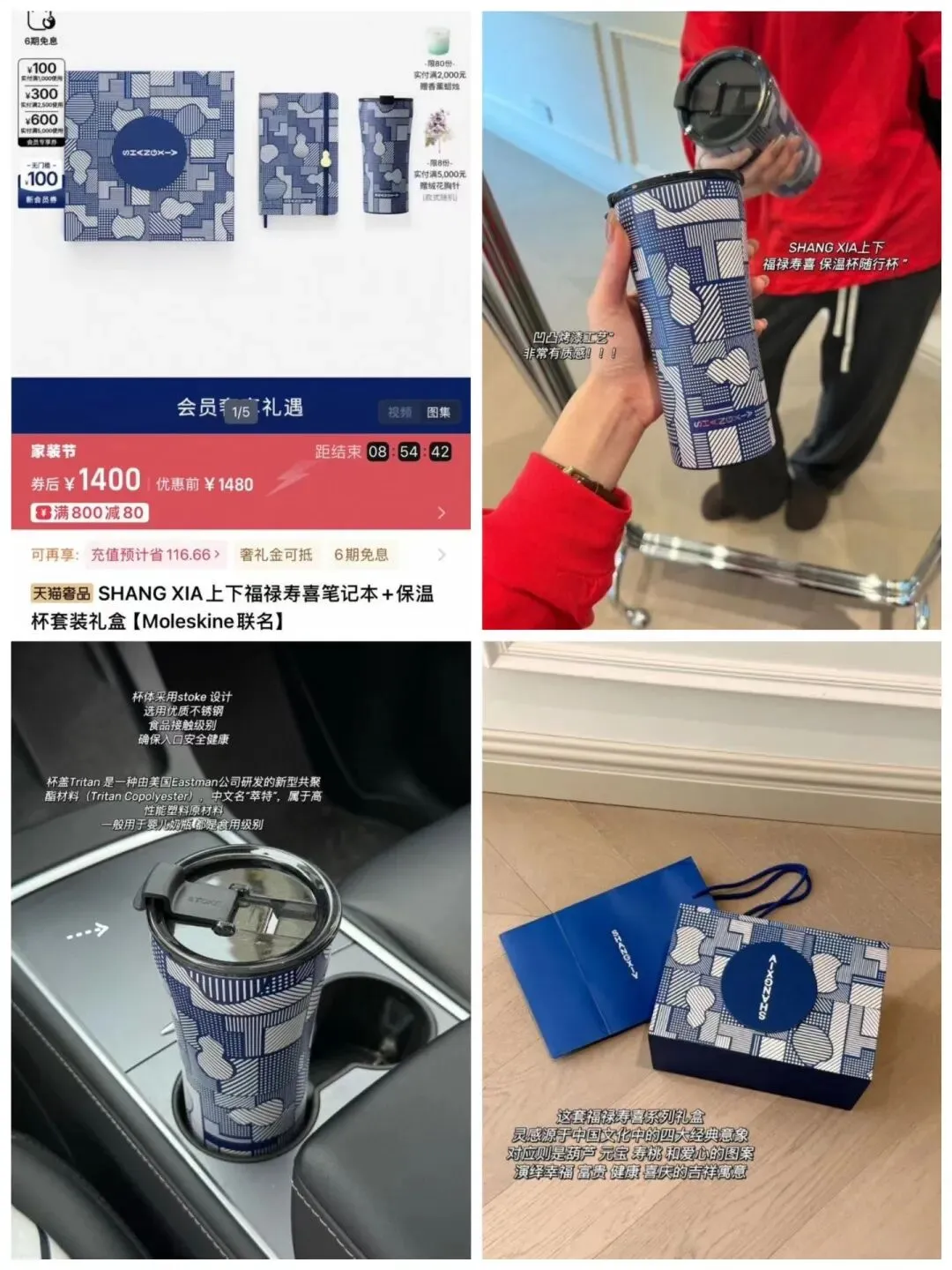 第一款就很打动我,是一个我不是太熟悉的品牌,叫做SHANG XIA上下,一个特别漂亮的中国古风福禄寿喜保温杯套装礼盒,非常适合妇女节好物分享。