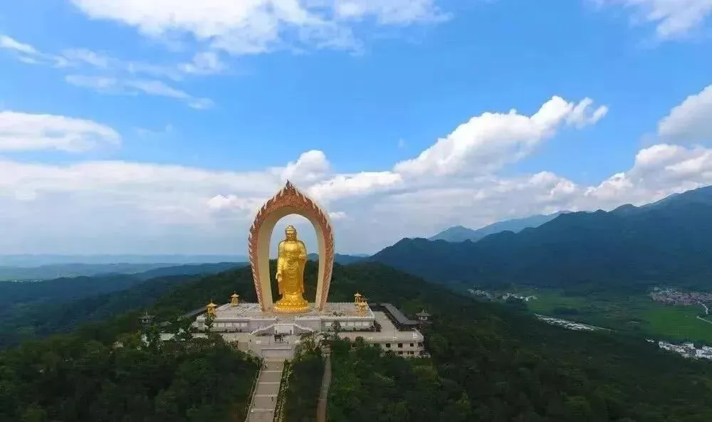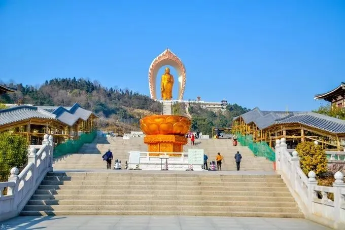 东林大佛是佛教净土宗祖庭东林寺的标志也是全球第一高的阿弥陀佛圣像东林大佛佛像身高48米代表阿弥陀佛发的四十八大愿