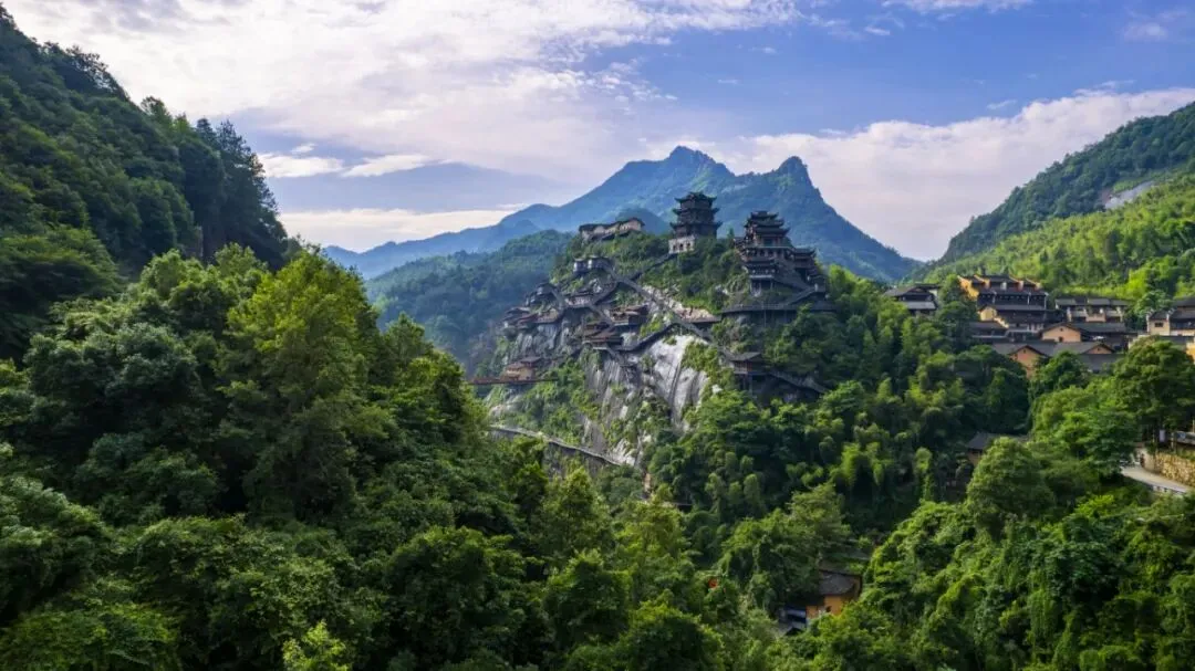 遥望白鹤崖、圆顶峰和岩铺街市的绝佳位置,