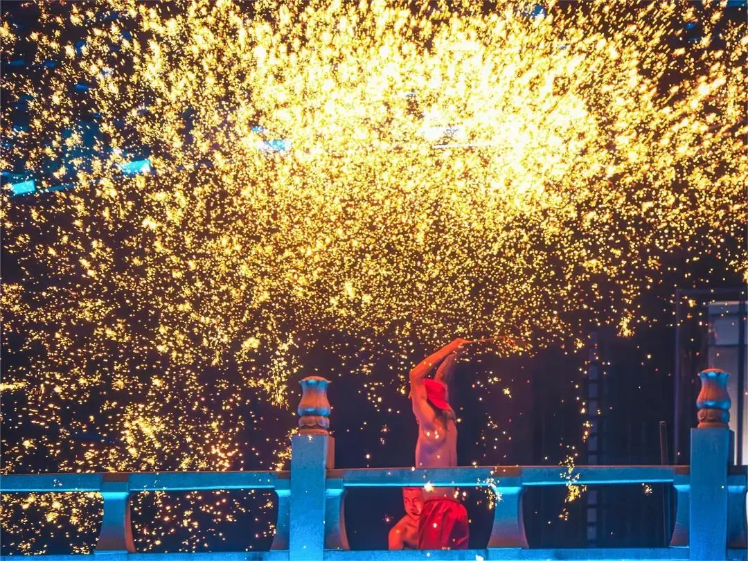 当始于北宋年间的非遗打铁花与璀璨浪漫的烟花秀