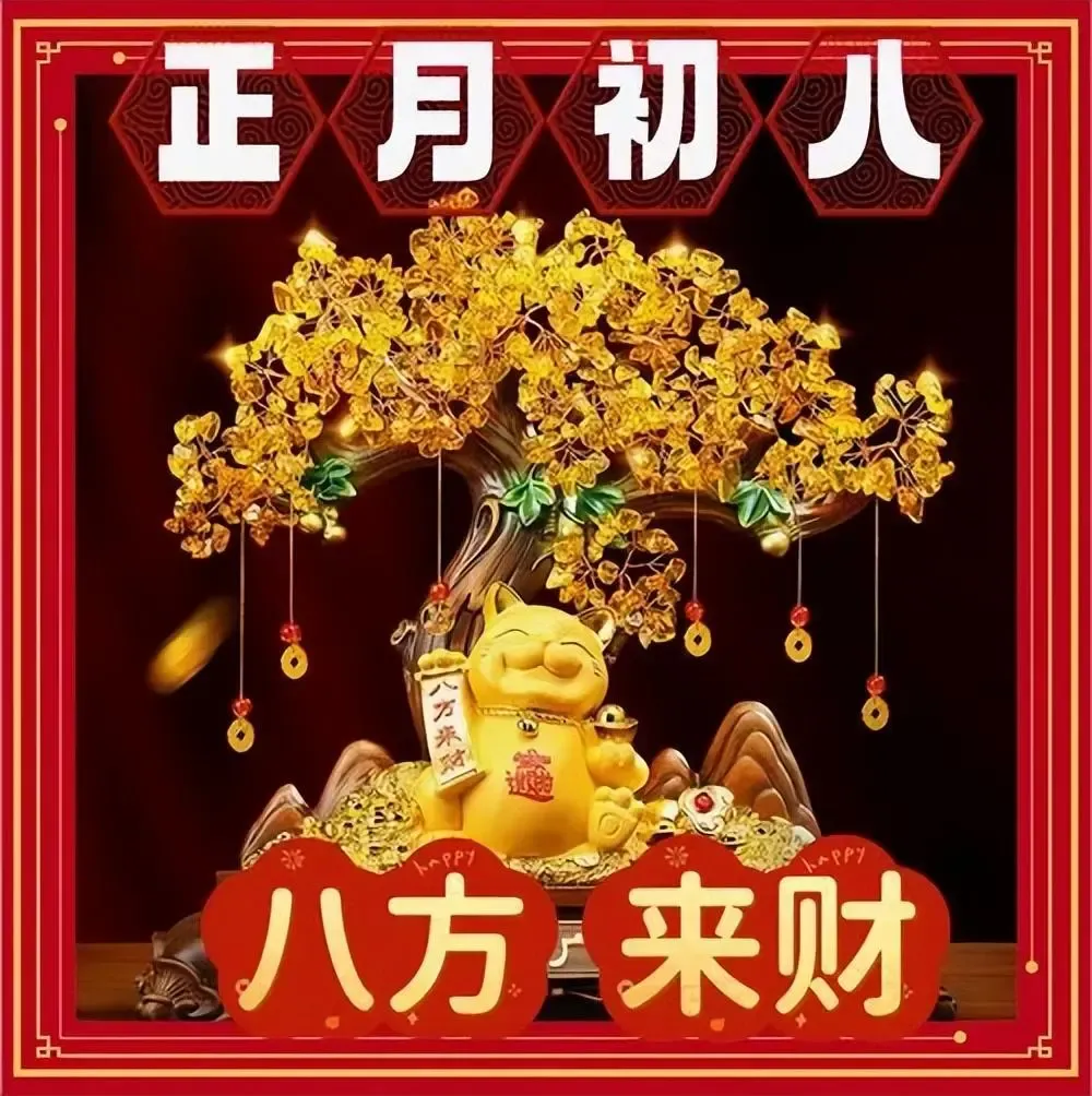 大年初八好日子,愿财富悄悄靠近你,幸福默默包围你。事业有方向,前路有光芒,生活有滋味,人生有希望。财神护佑,万事亨通,出门多喜多如意,在家无忧无烦愁。