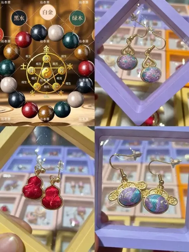 项目二:本草合香是中国传统香文化与中医药结合的产物,宋锦手工合香耳饰制作。 宋锦饰品DIY,千年宋锦,巧做发夹、胸针、挂饰,把中式风雅戴在身上。