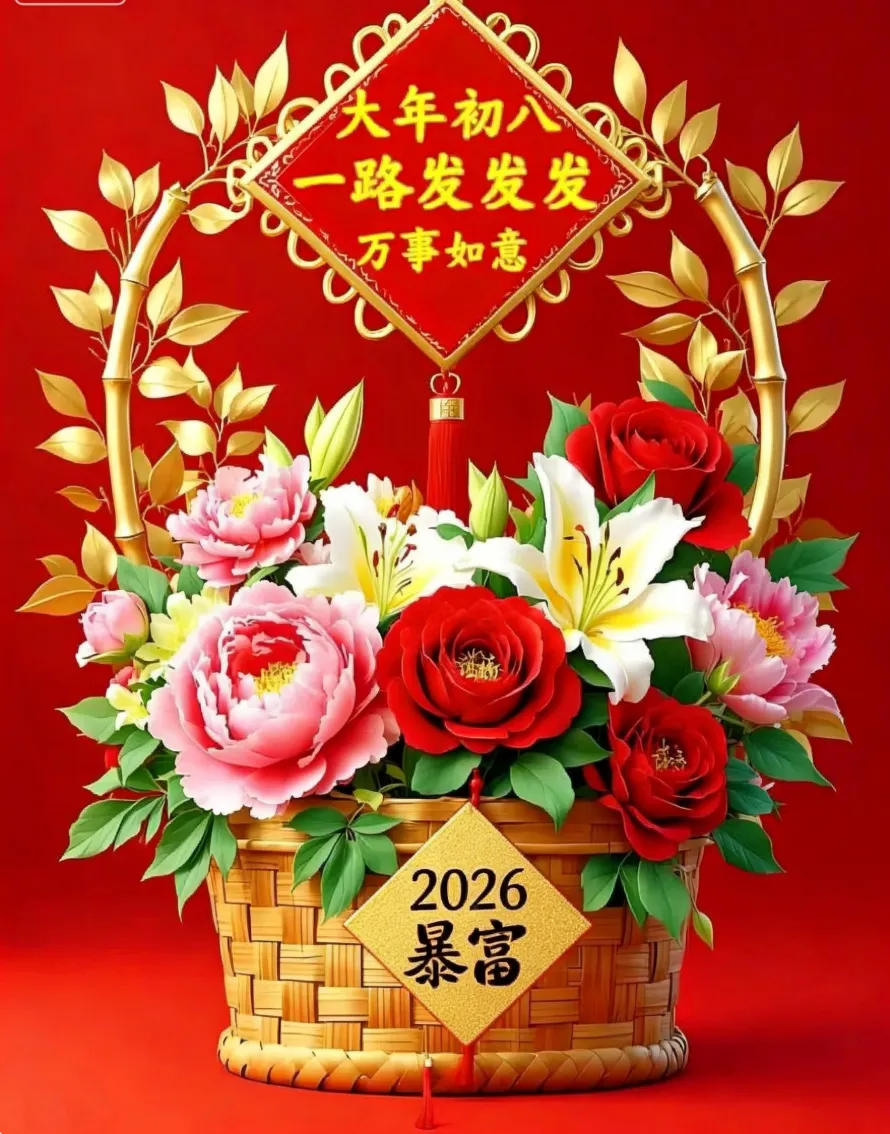 🧧💰🚀正月初八发发发,美好祝福送大家!健康常相伴,快乐围绕你!祝福大家:家和万事兴,幸福美满又安康;工作蒸蒸日上,心想事成万事顺!2026 马年,一路发发发!