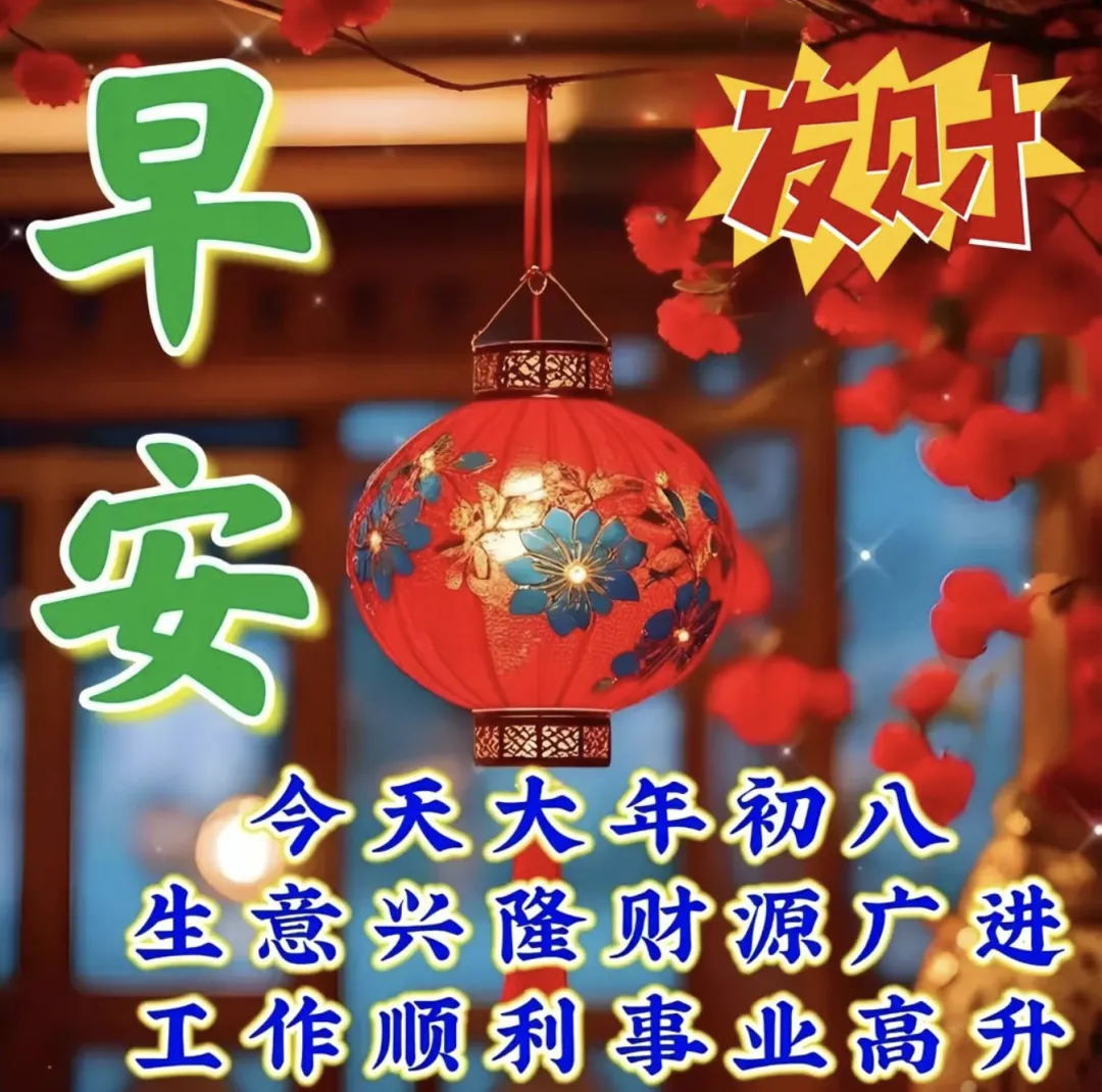 🌸🏮🏡大地回暖春节来,小桥流水百花开。大红灯笼挂起来,笑迎宾客喜迎财。烦恼忧愁不再来,福星财神相对拜。初八快乐,恭喜发财,马年大发!