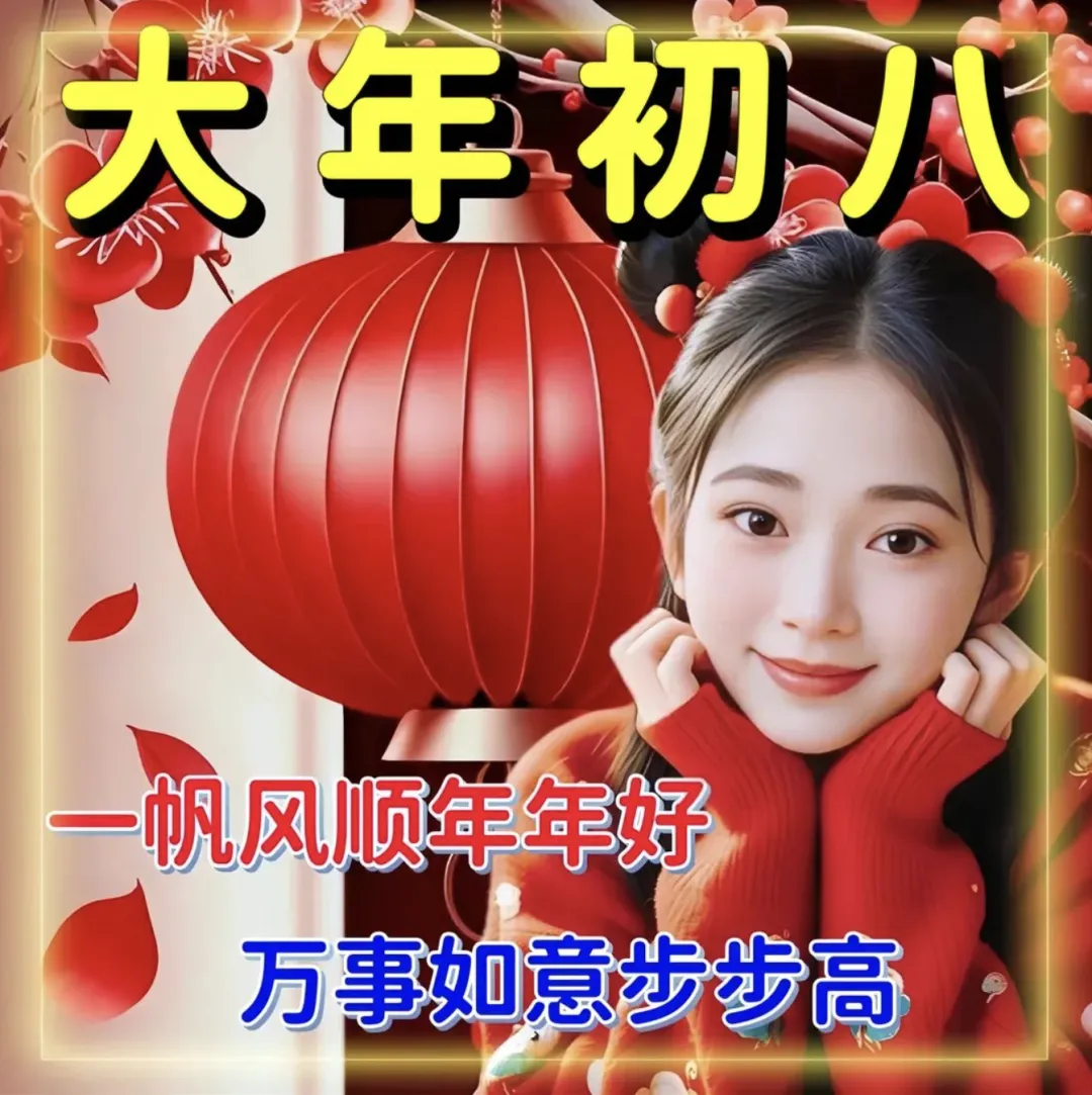 初八,送你八个祝福:一分牵挂,一分温柔,一分体贴,一份开心,一分关怀,一分安康,一分幸福,还有一分存起来,年年有余,月月安康。