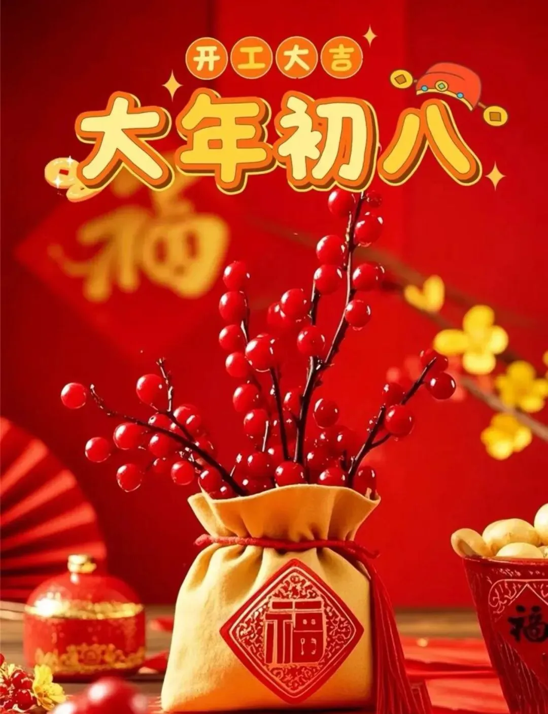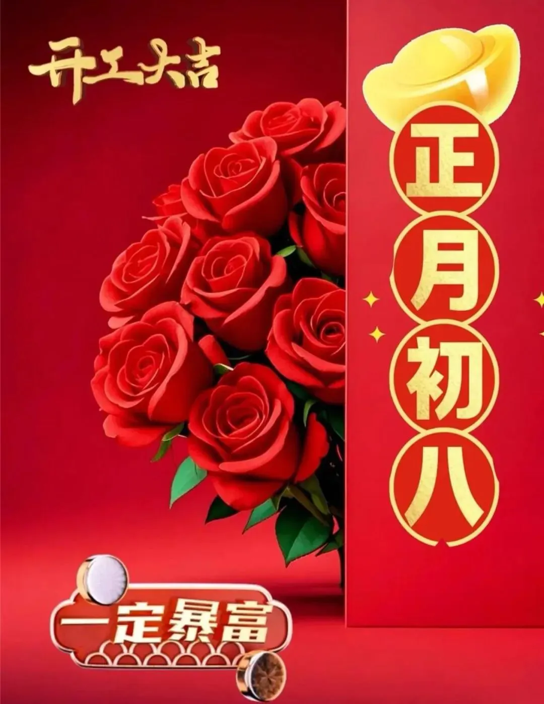 15. 正月初八,开工大吉万事兴。愿您开门迎好运,闭门享平安,日有进益,夜有好梦,工作顺心,生活如意,在这个马年里,策马扬鞭奔向更加美好的明天!恭喜发财,万事如意!