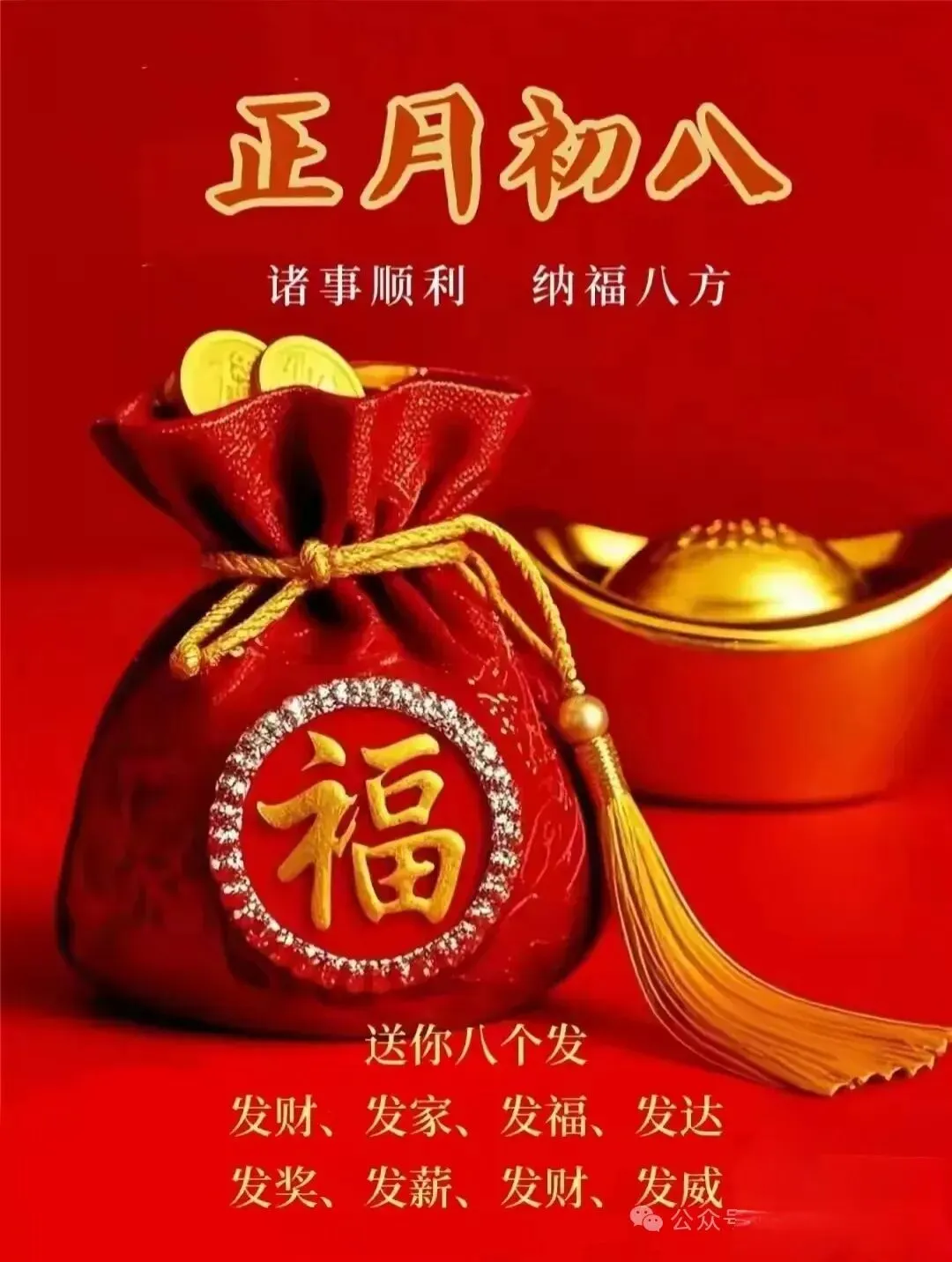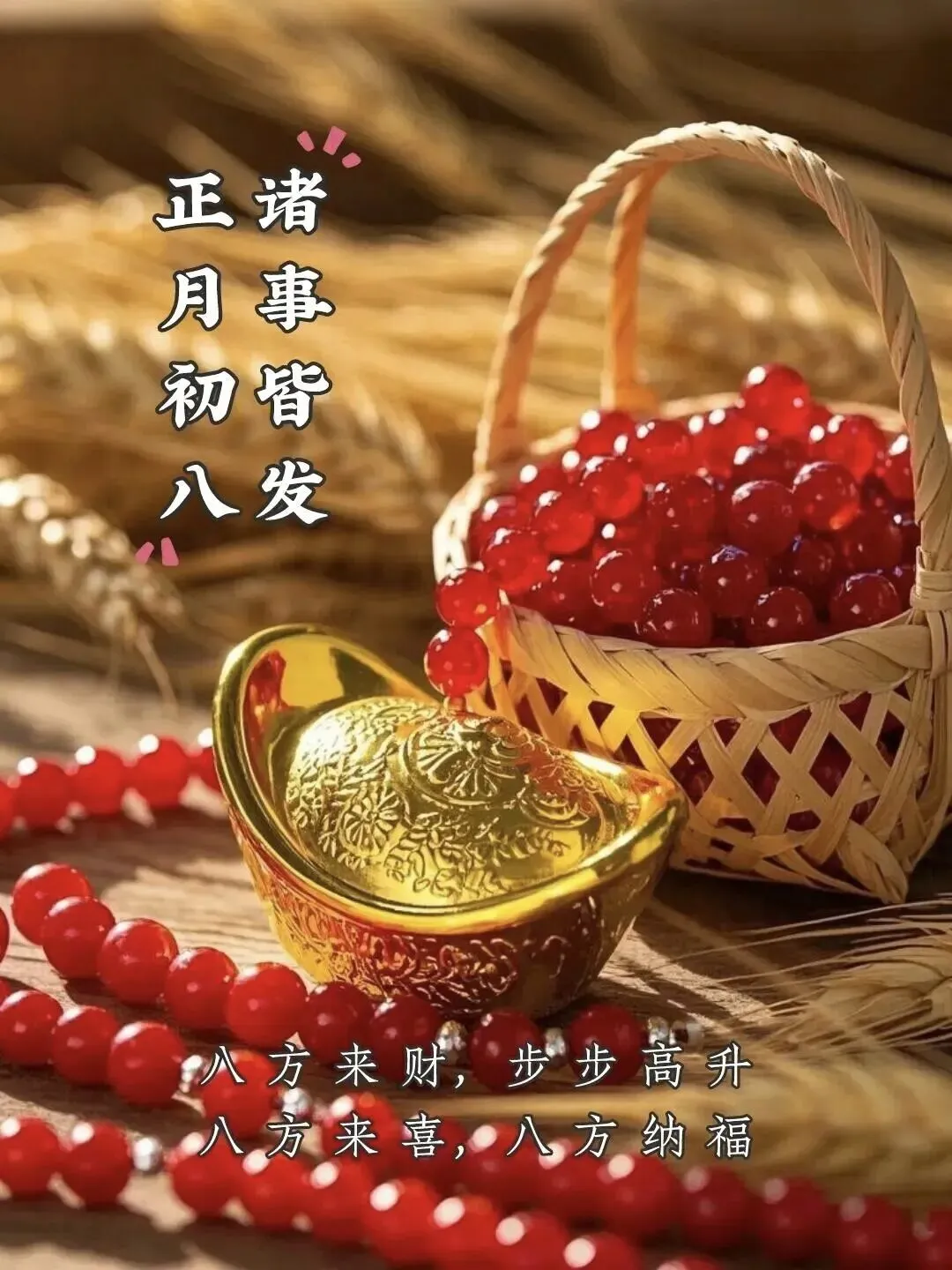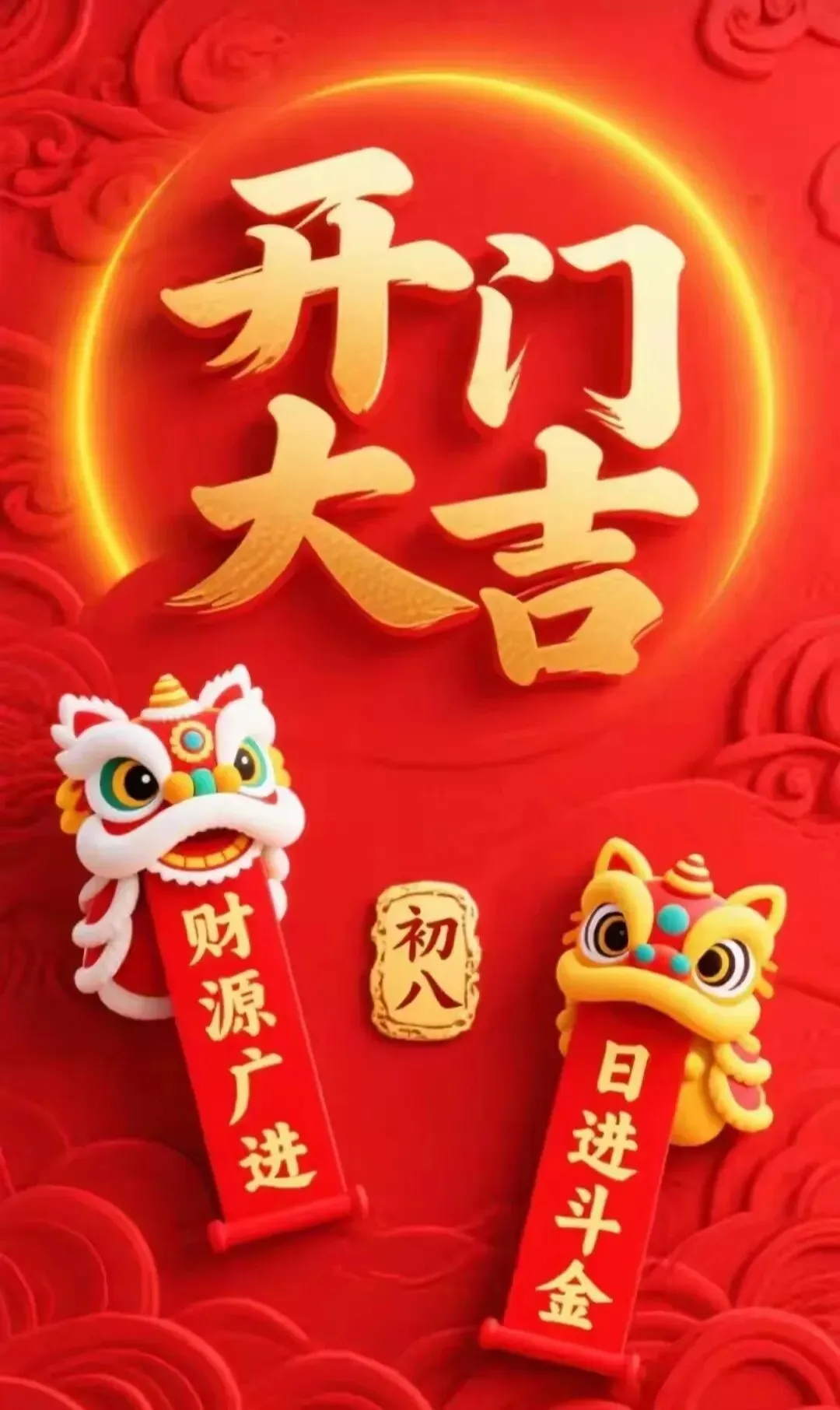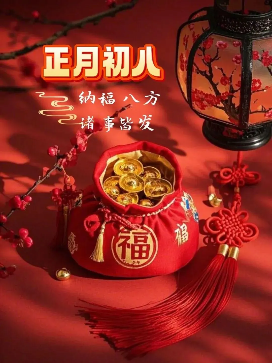 4. 正月初八,八仙赐福!🌸 传说八仙今日下界,为你送来平安、健康、财运与喜乐。愿你新的一年,如铁拐李般豁达,如吕洞宾般洒脱。生意兴隆,客源不断;家人安康,岁岁无忧。早安,开启幸运新模式!🍀🏮👨‍👩‍👧‍👦