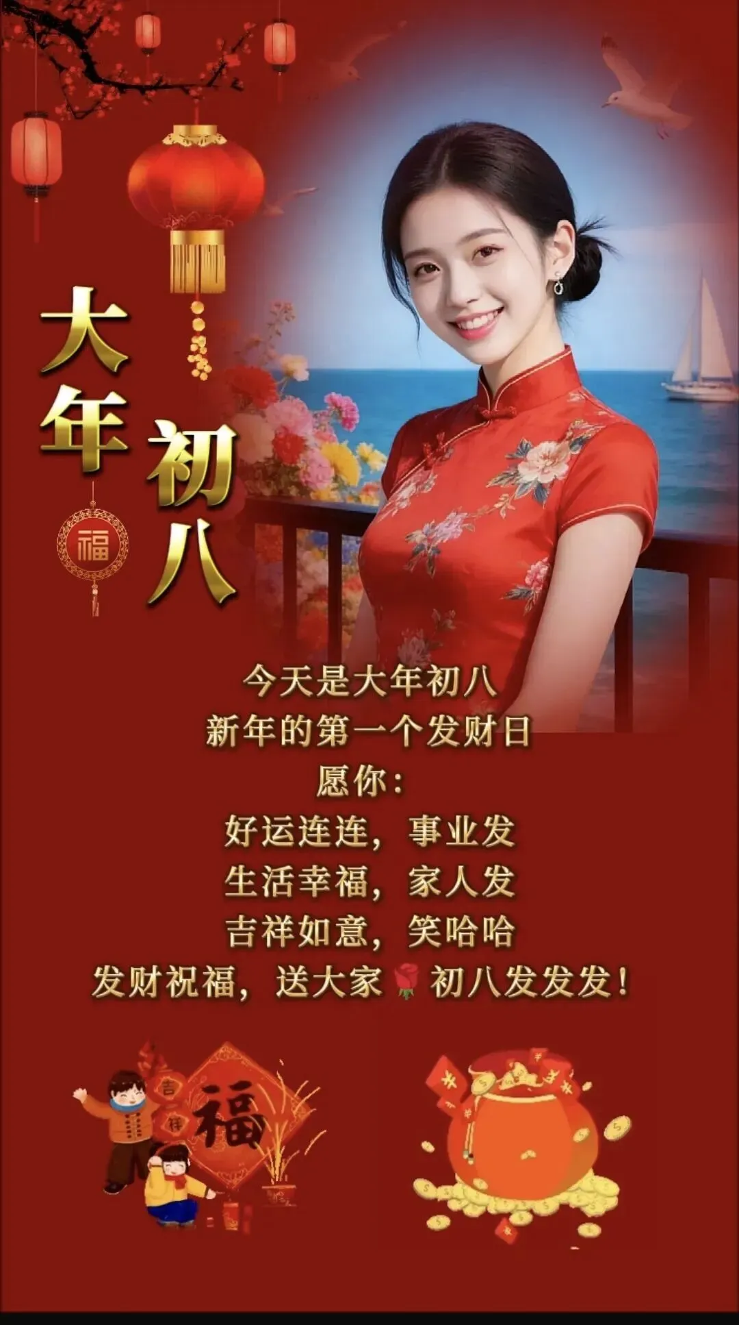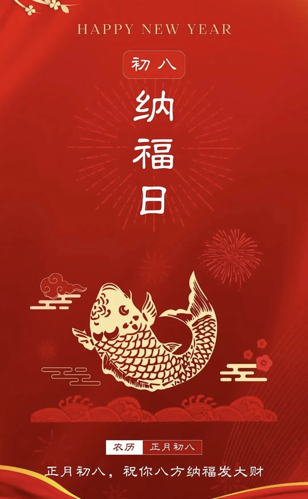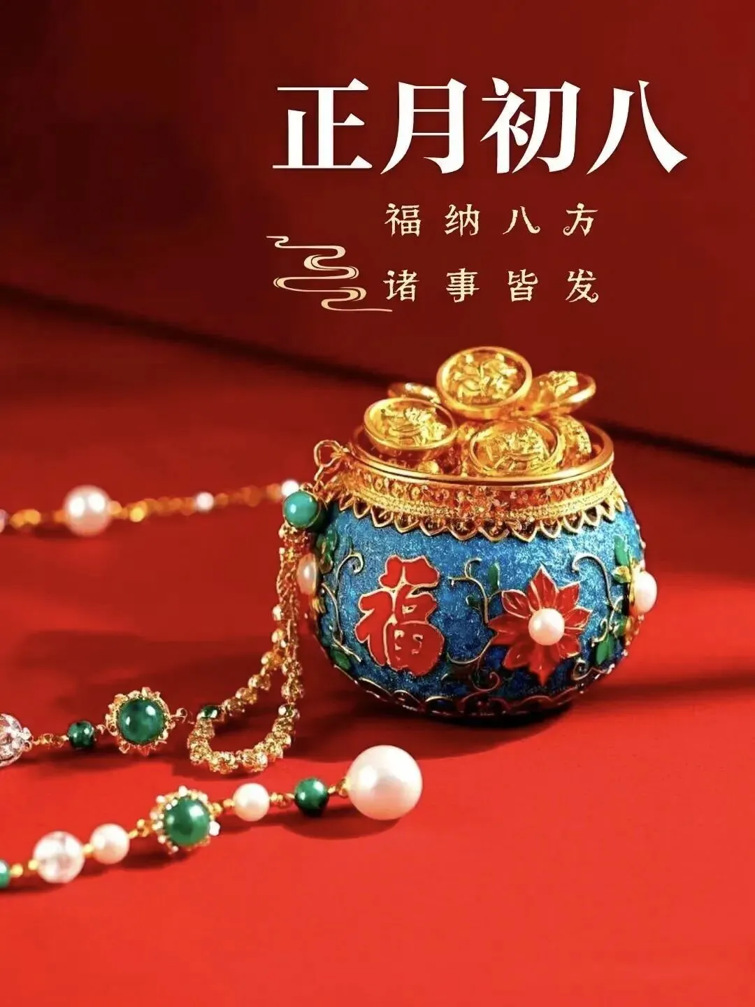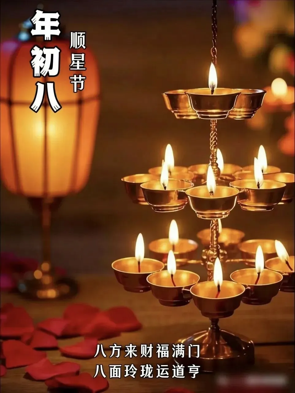 4. 正月初八,八仙赐福!🌸 传说八仙今日下界,为你送来平安、健康、财运与喜乐。愿你新的一年,如铁拐李般豁达,如吕洞宾般洒脱。生意兴隆,客源不断;家人安康,岁岁无忧。早安,开启幸运新模式!🍀🏮👨‍👩‍👧‍👦