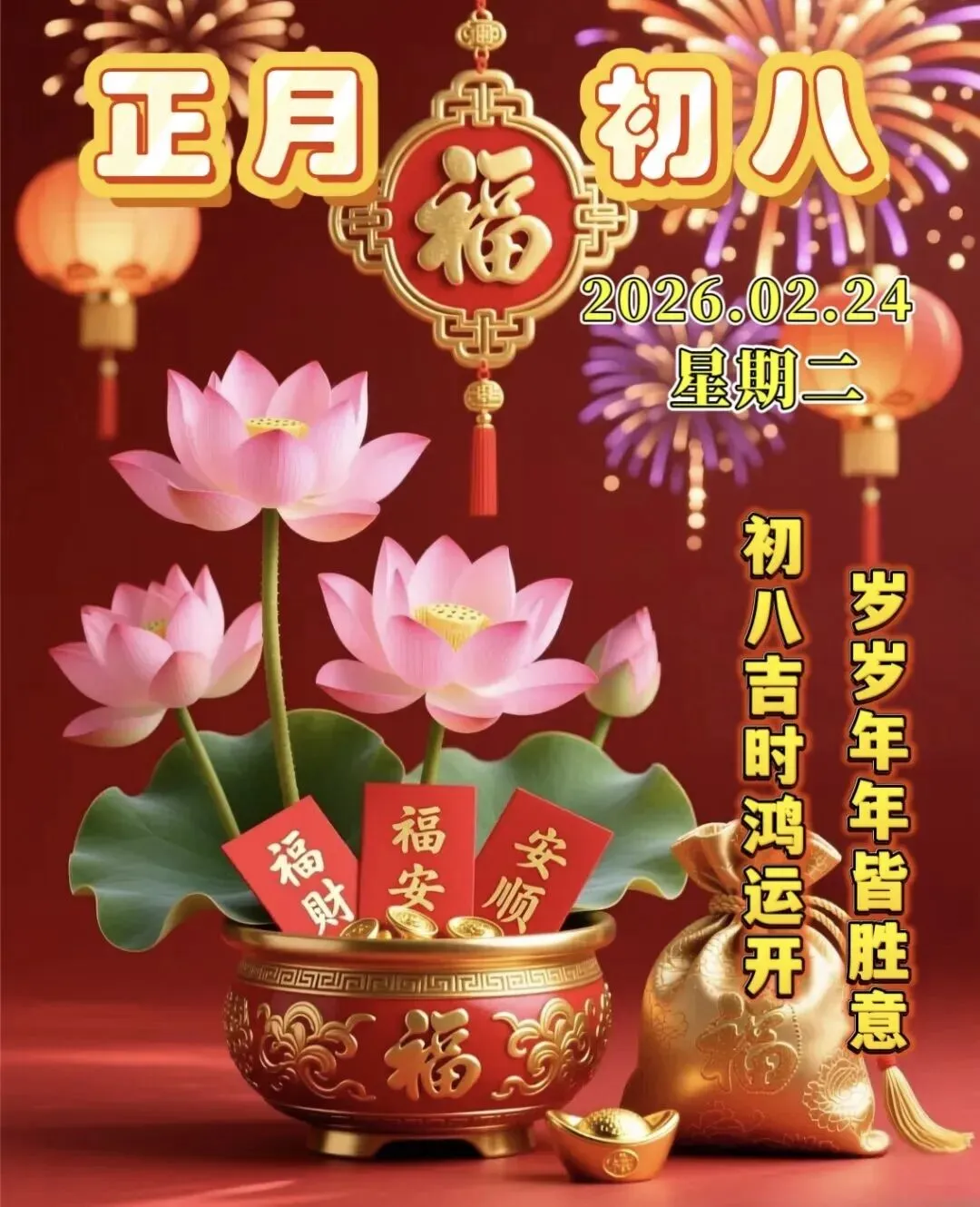 2026年2月24日周二早上好图片,大年初八早安吉祥图片,八方纳福,八方来财诸事发发发.