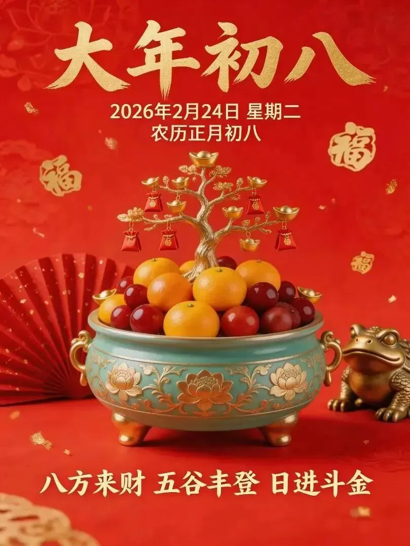 当前位置:首页>美女资讯>2026年2月24日周二早上好图片,大年初八早安吉祥图片,八方纳福,八方来财诸事发发发.