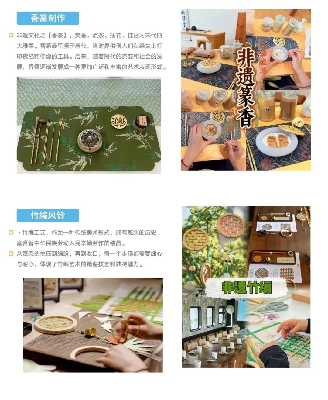 动手做非遗手作的感觉,就像品味一款有年代感的古早点心,越细品,越能发现其中的韵味。指尖摆弄着贝母、瓷片,螺钿胸针、青花瓷拼贴画,贝母的流光配着瓷片的素雅,像两种口感的碰撞,惊艳又不突兀。还有艾草养生锤、香道篆香,在香气和指尖的忙碌里,慢慢感受中式生活的雅致,温柔又从容。