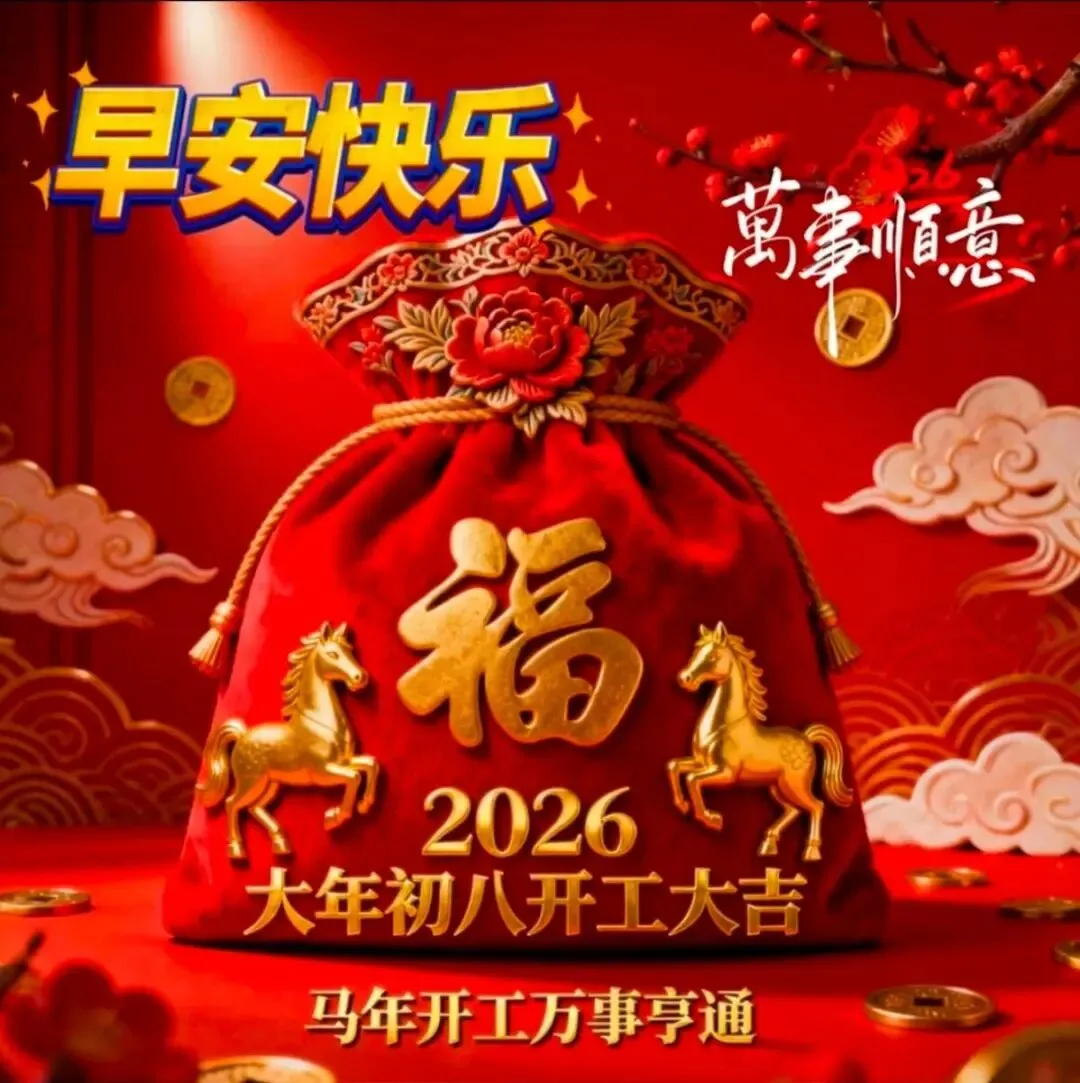 5. 大年初八 好兆头 🍀 金马送福 到门口 🐎🚪 愿你新的一年 财来运转 事事旺 💰 福来运转 人人安 🍎 事业风风火火 🔥 前途光明坦荡 ✨ 生活有滋有味 🍲 家庭和和美美 🏮 早安呀 各位!