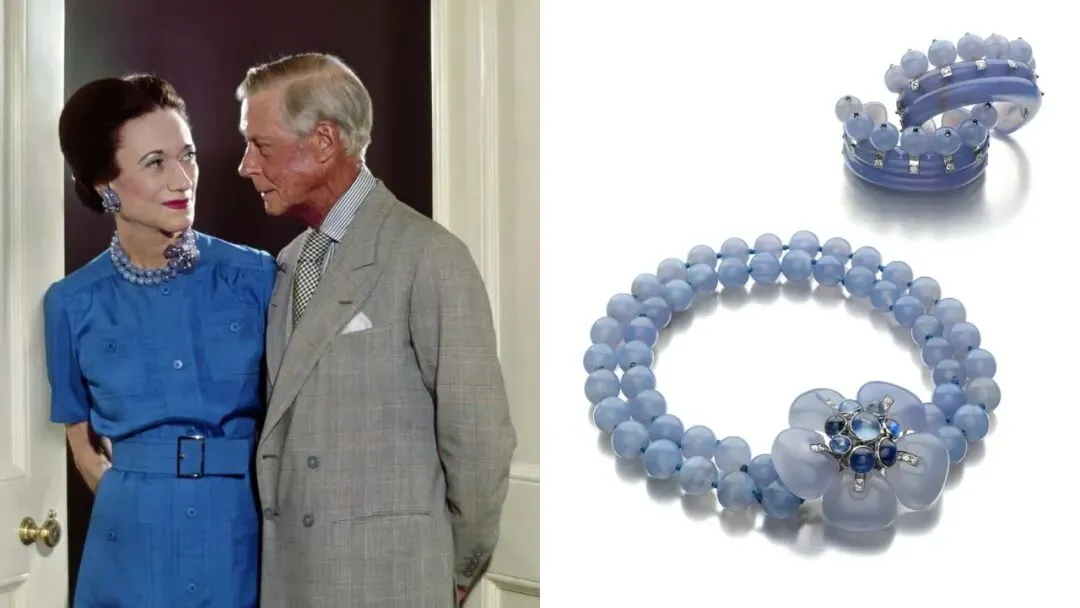 温莎以其大胆的珠宝品味而闻名,她偏爱前卫且定制风格的珠宝作品。在她的藏品中,最具代表性的作品之一是由Suzanne Belperron(《传奇女珠宝设计师:老娘的风格就是我的签名!》)设计的一套华丽的蓝色水晶、蓝宝石和钻石套装。