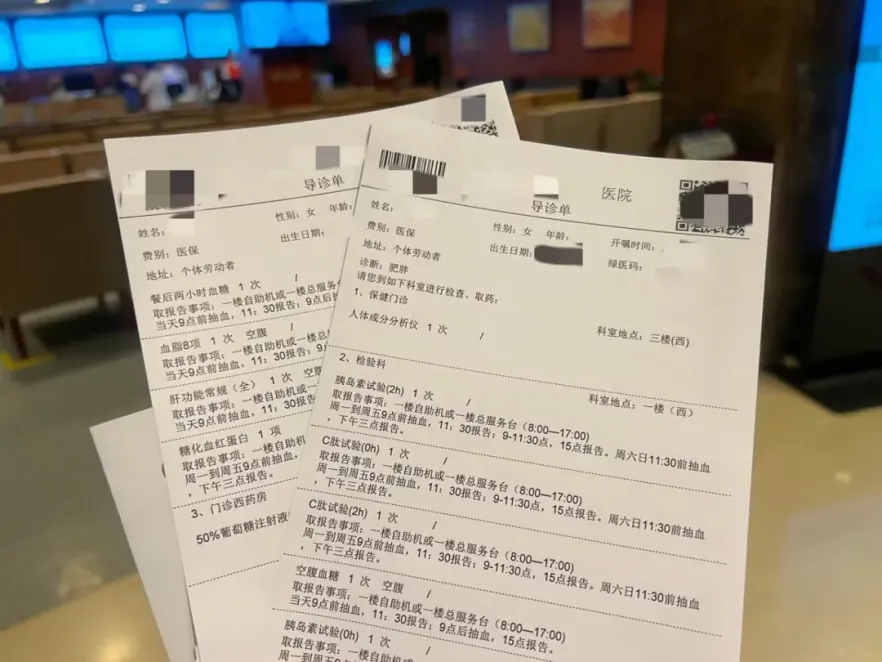 第一次面诊,医生先详细问了我的健康情况,接着开检查单:体重、体脂、血脂、血糖……
