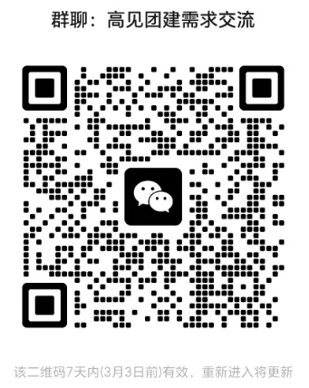 【温馨提示】可以加下面高见团建微信群,不仅可以咨询问题,还可以和大家一起沟通交流;最主要,我们还有团建的各种福利活动。