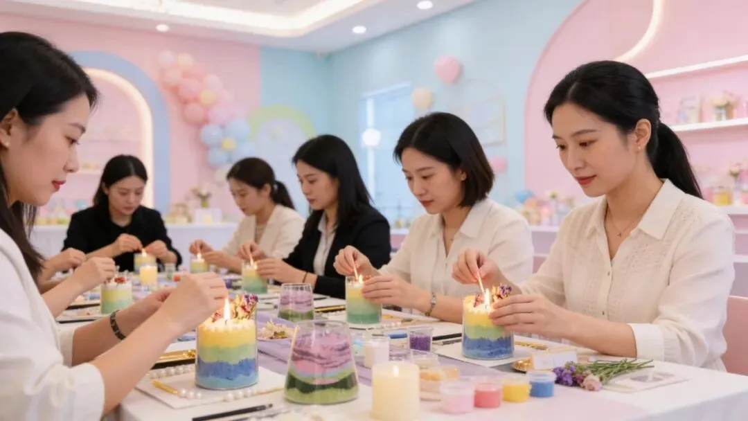的手作体验——砂语烛光·色彩治愈香薰蜡烛团建活动。通过分层彩砂、香氛与烛光的结合,每位参与者都能在短短1.5小时内完成一份可带走的个人作品。本次活动无需基础,流程稳定,可上门执行,适合小规模团队一起完成一段安静、专注、放松的创作时光。成品可作为桌面摆件、香氛小物或节日礼物,用最直接的方式,为女性同事留下一份可见的关怀与仪式感。