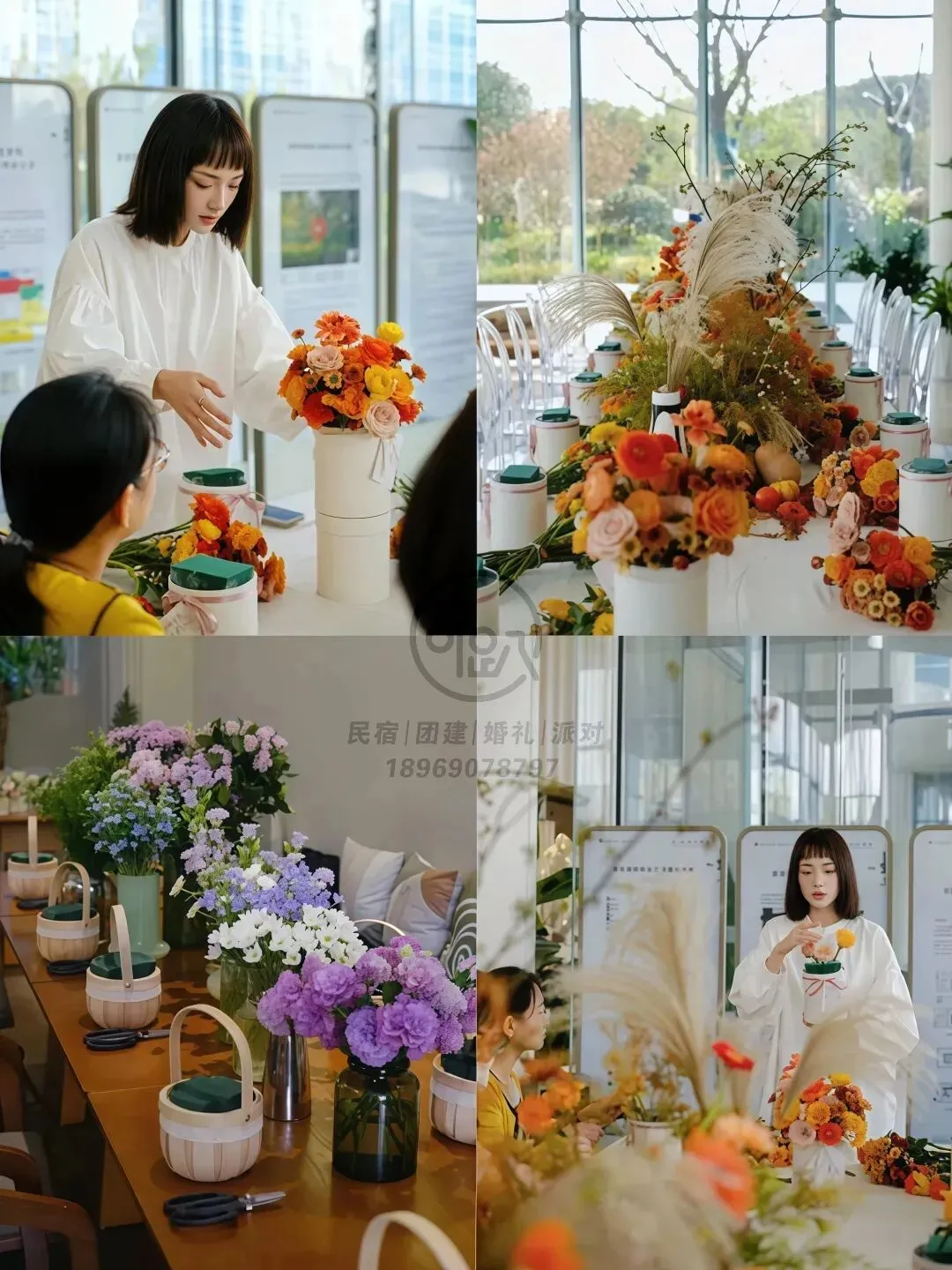 2. 讲解花材选择、层次布局与固定技巧
