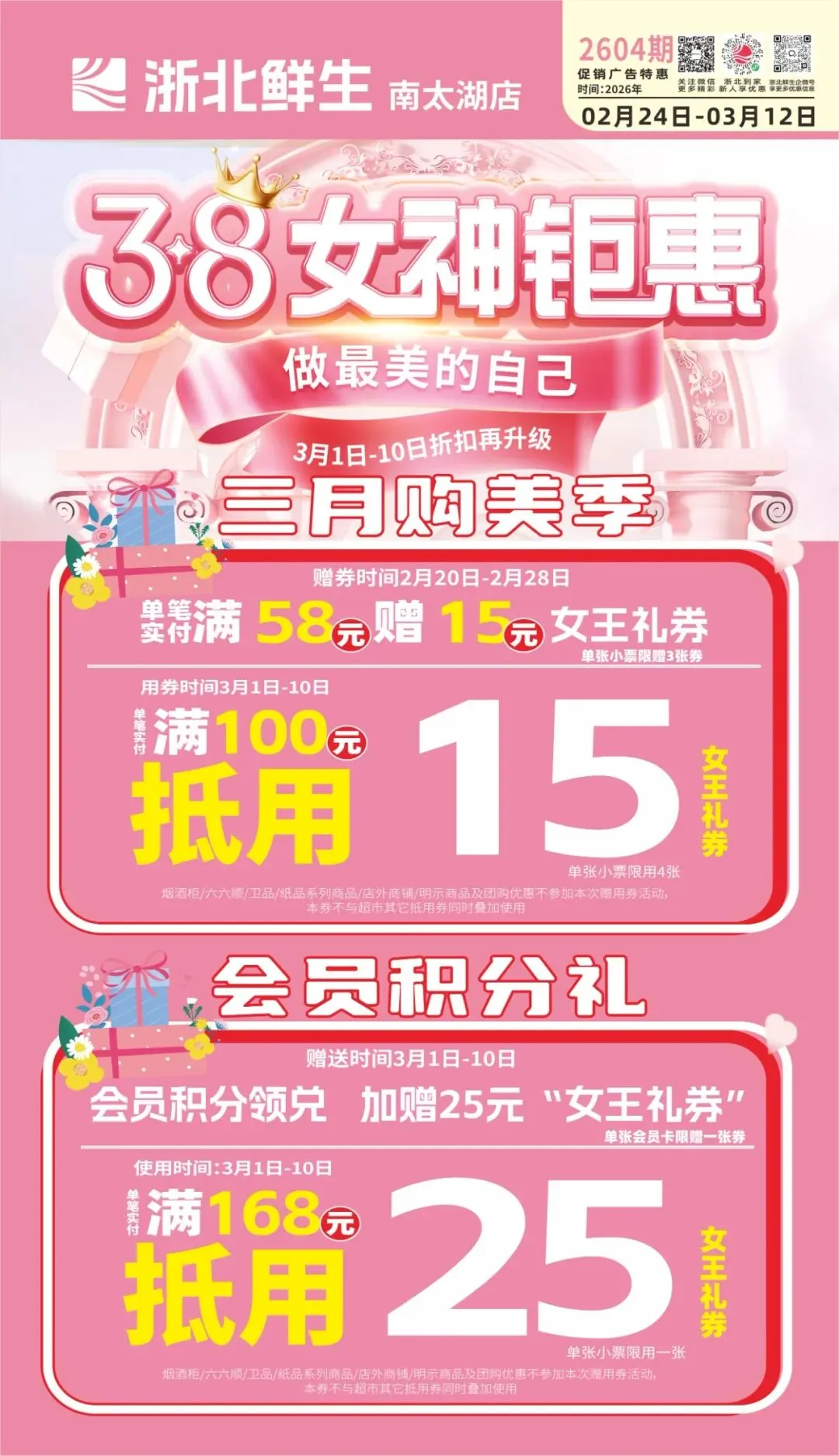 当前位置:首页>美女资讯>【浙北鲜生南太湖店】3.8女神钜惠,做最美的自己!妇女节钜惠来袭,献给最美的你!