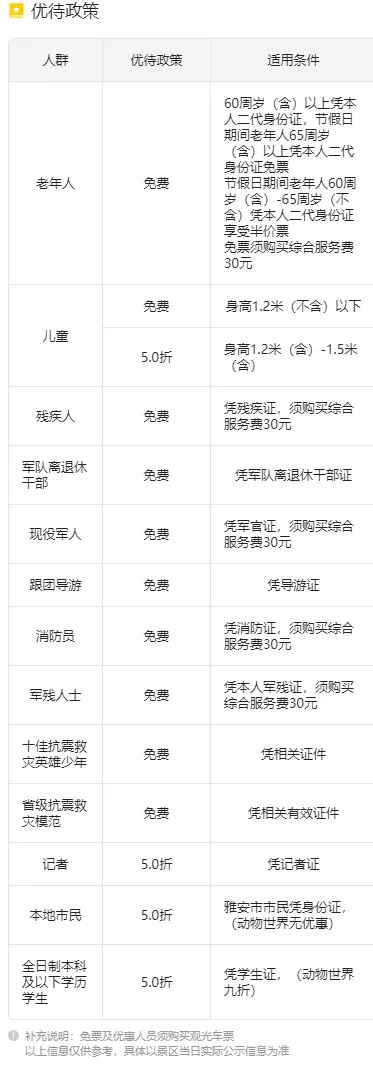 附:门票优惠政策