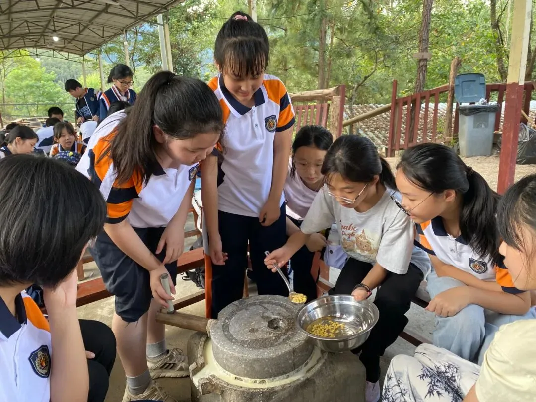 小小的磨盘,藏着中华民族团结协作的大智慧,一人拉磨盘,一人放黄豆,麦苗们配合默契,齐心协力在每一圈的研磨中感受到了劳动创造的价值。