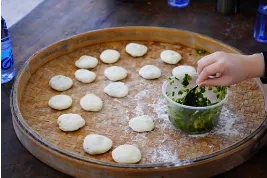 以劳促学,亲制葱饼葱饼是永泰当地历史悠久的特色小吃,将调好的馅料包入面团中压实,最后撒上芝麻,满怀期待的等待葱饼出炉。