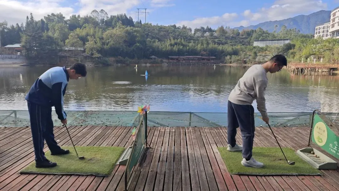 在湖光山色中领略高尔夫球运动的魅力,集体育运动和游戏于一体,挥动球杆将高尔夫打入湖中比比谁打得更远。让小朋友再挥杆感受运动的感受春天的乐趣。