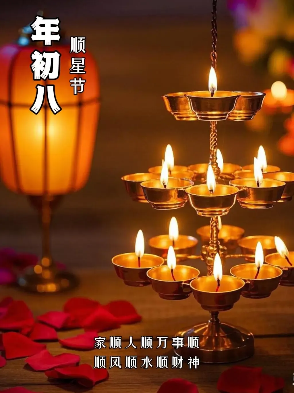 正月初八是顺星节,祝福您新年快乐,财源滚滚,八方来财,抬头见喜,喜气洋洋,抬头见福,福气满满,时来运转,好运连连,家和人丁兴旺,2026年万事大吉!
