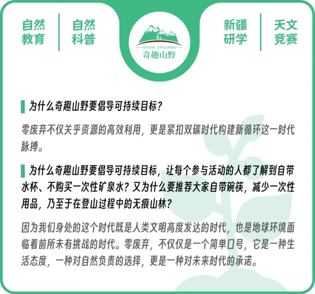 奇趣山野自然活动是新疆趣游自然教育科技有限公司的子品牌之一。主要模块是:自然教育、红色文化定制活动、森林疗愈型团建、亲子活动定制。