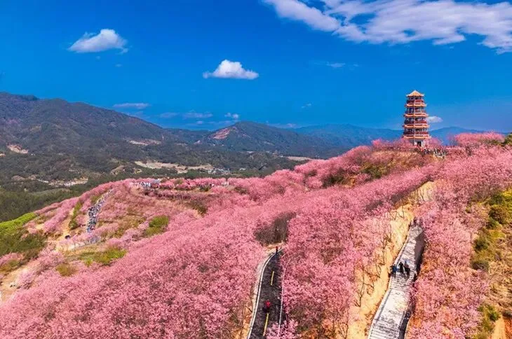 - 适时前往【清流赖坊樱花园】,位于福建三明市清流县赖坊镇,是中国规模最大的樱花园之一,以2000余亩土地、30万株樱花的磅礴花海,绘就了早春最盛大的“山间粉雪”图。上百个品种,从早春的绯寒樱、山樱,到中晚春的吉野樱、关山樱、普贤象、垂枝樱,及珍稀的绿萼樱、黄樱,次第盛放,花期可延至3月底。园区与赖坊明清古民居(马氏宗祠、彩映庚等)仅一径之隔,可一程同赏“花海与青砖灰瓦,新色对古韵”的和谐景致。其中马氏宗祠为马英九先生的祖祠。这里的樱花.依山傍水,长在山谷、溪涧旁,樱林+溪水+青山同框,画面特别灵秀。清幽静谧,人少景美小众秘境,不拥挤,氛围安静、治愈,适合休闲慢游。多为原生山林环境,雾漫山谷时,仙气感、氛围感极强。