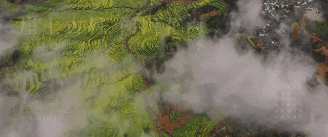 数百栋徽派古民居在百米落差的坡面错落有序,每当日出山头,晨曦映照,云雾弥绕。