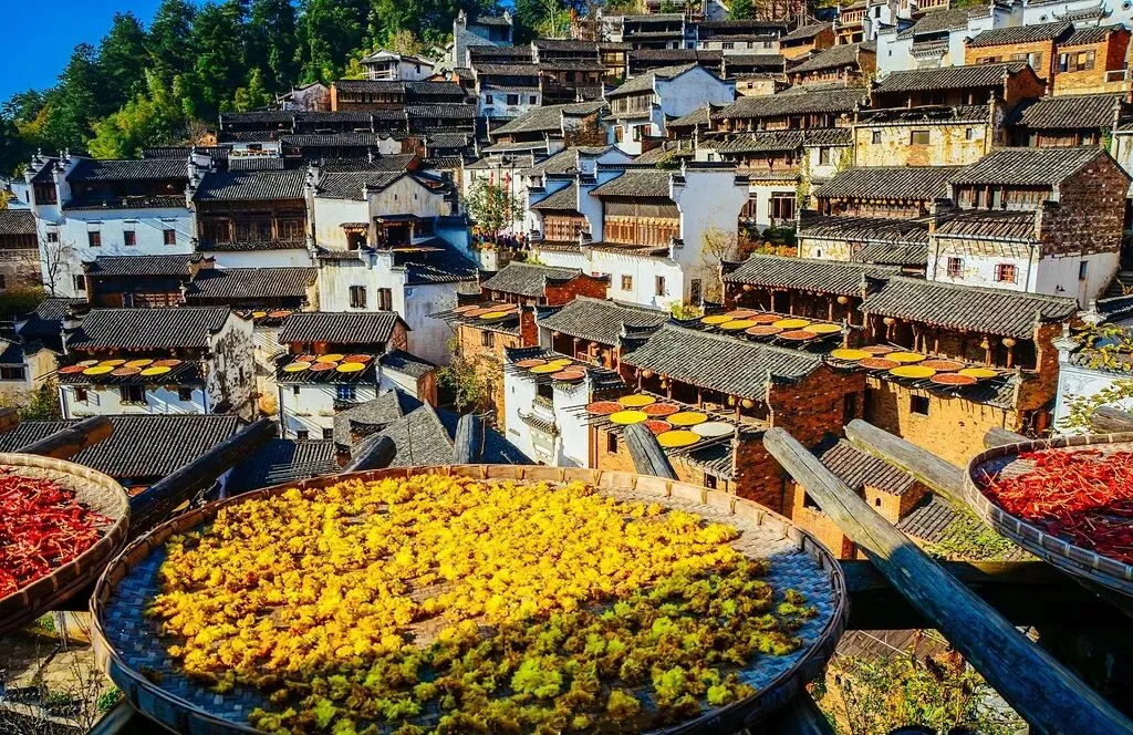 指定上车点集合出发,车赴中国最美丽的乡村【婺源】车程约2小时;游览“江南小布达拉宫”、中国最美符号、梯云村落——【篁岭】(游览约3小时,含门票+索道)山崖上的古民居村、屋顶上的晒秋美景青山向晚翠,碧盈轩水含春傍槛流。周边梯田覆叠,白云环绕。被称为“梯云人家”。篁岭是自然的宠儿,被周边数千亩梯田簇拥,四季皆有各种颜色的呵护、娇宠,稍不留神就会碰翻颜料桶,于是乎漫山遍野的大红、新绿、嫩黄。每年三、四月,千亩油菜花“盛装”绽放,桃花、梨花、杜鹃花争奇斗艳。随之,两个月为周期幅流动的缩写版“清明上河图”。家家户户屋顶晒盘云集,绘就出一幅“晒秋人家”风情画。【卧的视觉“盛宴”登场,云间梯田花卉主题变化莫测,轮番演绎梦幻般的大地艺术。乘观光索道上山【天街】民居围绕水口呈扇形梯状错落排布,U形村落带您体验南方的“布达拉宫”。徽式商铺林立,前店后坊,云玻璃桥】索桥似玉带将两岸的梯田串接,体验百米高空玻璃栈道。梯云村落,晒秋人家。篁岭以晒秋闻名天下。