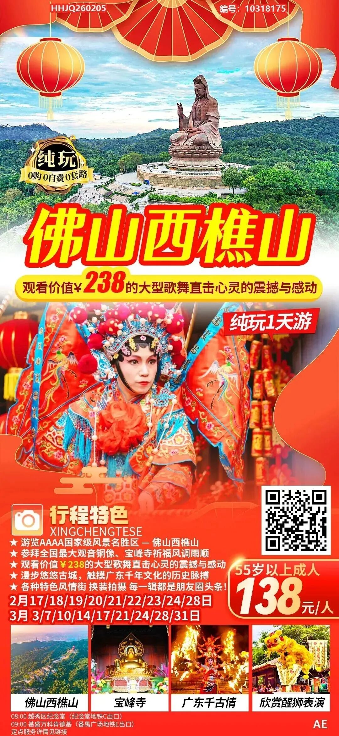 佛山西樵山祈福+千古情纯玩1天游