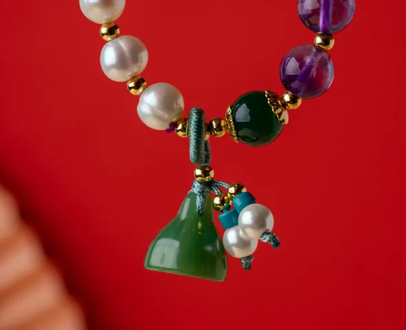 天然玉石搭配珍珠,珠体经过精心打磨,自带柔光滤镜,环绕腕间楚楚动人,无论怎么搭都高级