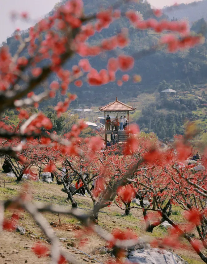 穿行漫山桃林,看粉桃簇簇、闻暗香盈盈