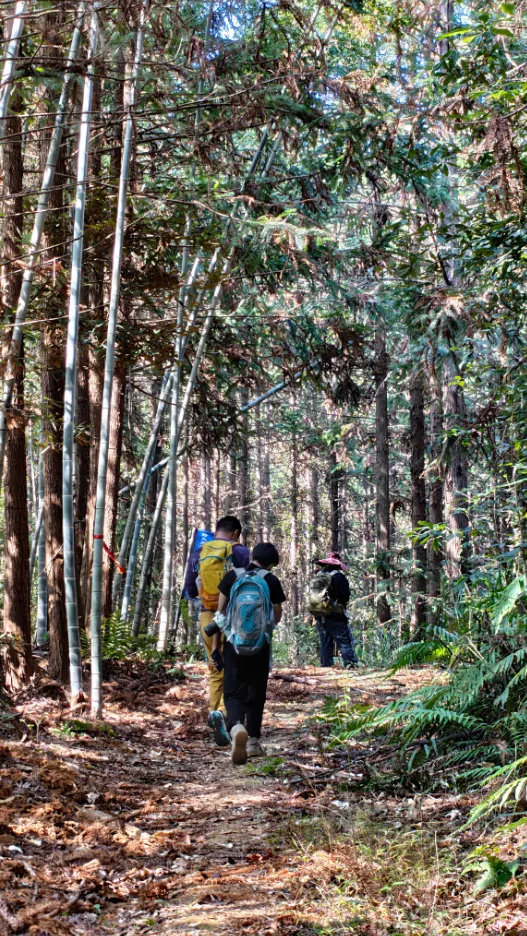 12:00-17:00  徒步穿越粤赣两省,油菜花田,竹林,松树林,桃花林,公路穿插其中。山路复杂,大家结伴同行,一路欢笑声,根据沿途的路线指引会经过2个签到点打卡(沿途较少商店,请自备干粮,签到点有水补给)