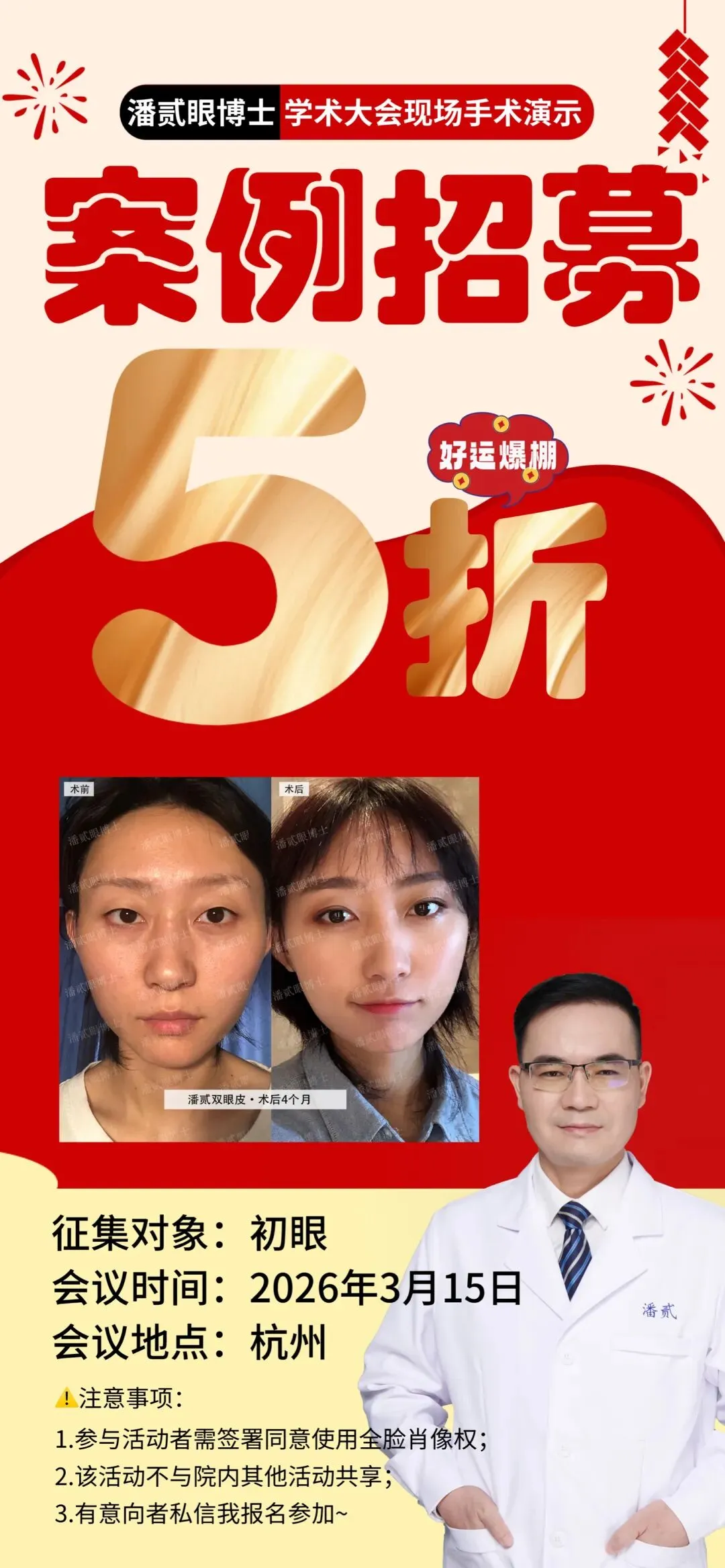 初眼双眼皮手术·5折模特️1位|潘贰眼博士学术大会现场手术示教案例招募叒来了~