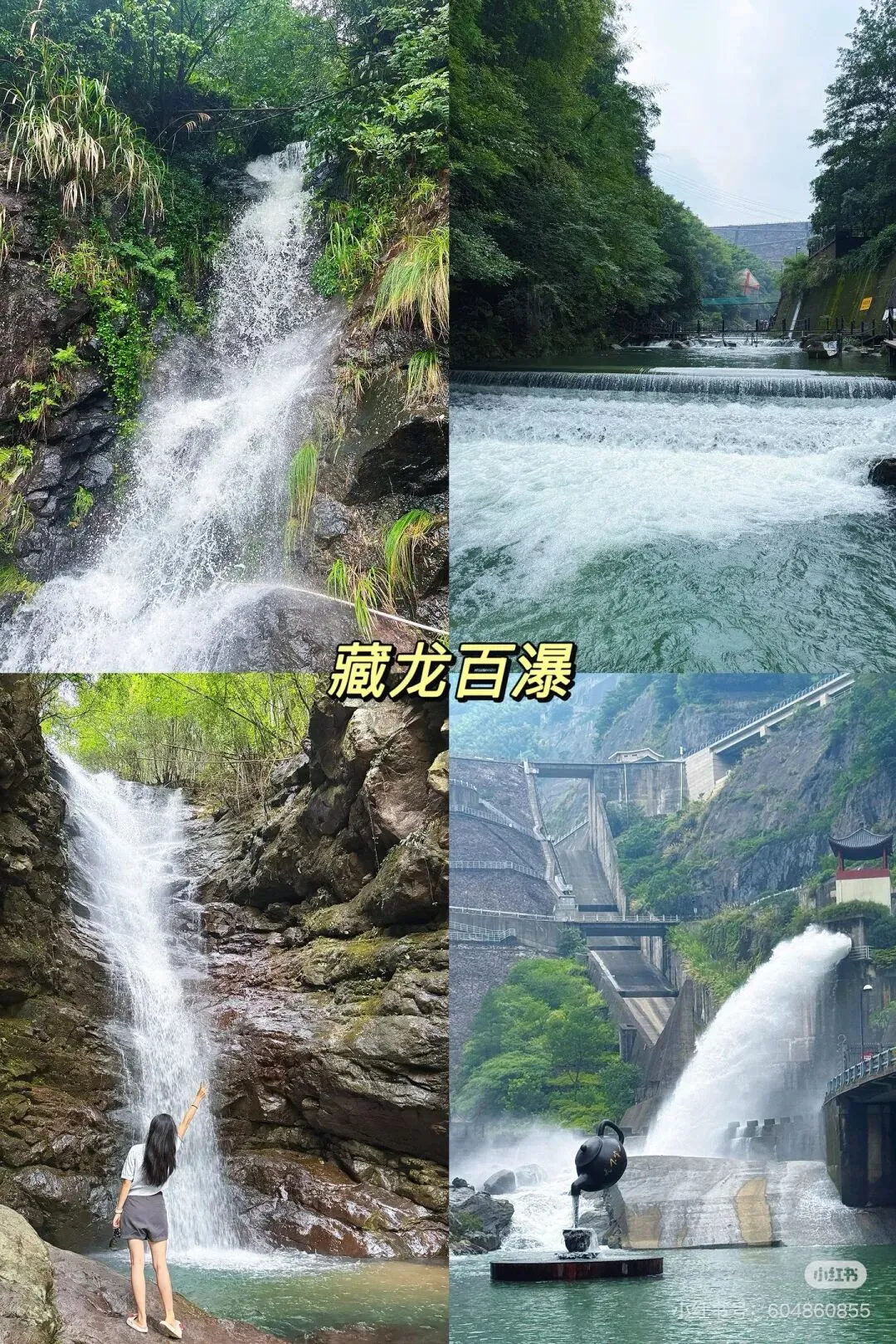 藏龙百瀑是浙江最大的瀑布群,有三折重叠,落差为60多米的“长龙飞瀑”,有彩虹横卧的“ 虹贯龙门”(人称小黄果树),更有神形皆备的“神龟听瀑”——真可谓瀑瀑相连,一步一景。藏龙百瀑不仅以瀑布众多而闻名,同时还有一块万吨巨石在七千万年前就悬挂在两座悬崖之间,人称“仙人桥”,有千钧一发之险,望仙石、老鹰石、天生悬石,石石相望,形象逼真。俗话说深山藏宝,景区内有多种野生动物和近百种国家保护树种